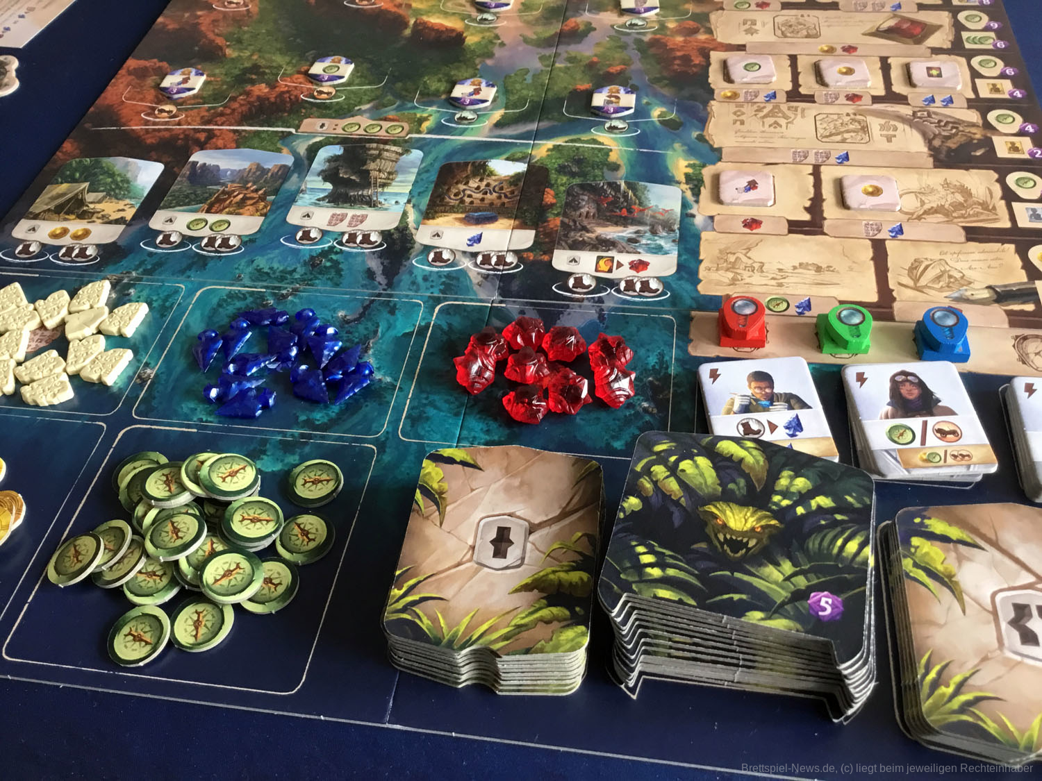 Lost Ruins of Arnak kombiniert Deckbau und die Platzierung von Arbeitern in einem Spiel aus Erkundung, Ressourcenmanagement und Entdeckung. Zusätzlich zu den traditionellen Deckbau-Effekten können Karten auch dazu verwendet werden, Arbeiter zu platzieren, und neue Arbeiteraktionen werden verfügbar, wenn die Spieler die Insel erkunden. Einige dieser Aktionen erfordern Ressourcen anstelle von Arbeitern, so dass der Aufbau einer soliden Ressourcenbasis von entscheidender Bedeutung sein wird. Sie sind auf nur eine Aktion pro Runde beschränkt, was wird Ihnen also jetzt am meisten nützen und was können Sie noch tun, in der Annahme, dass jemand anders es nicht zuerst tun wird?