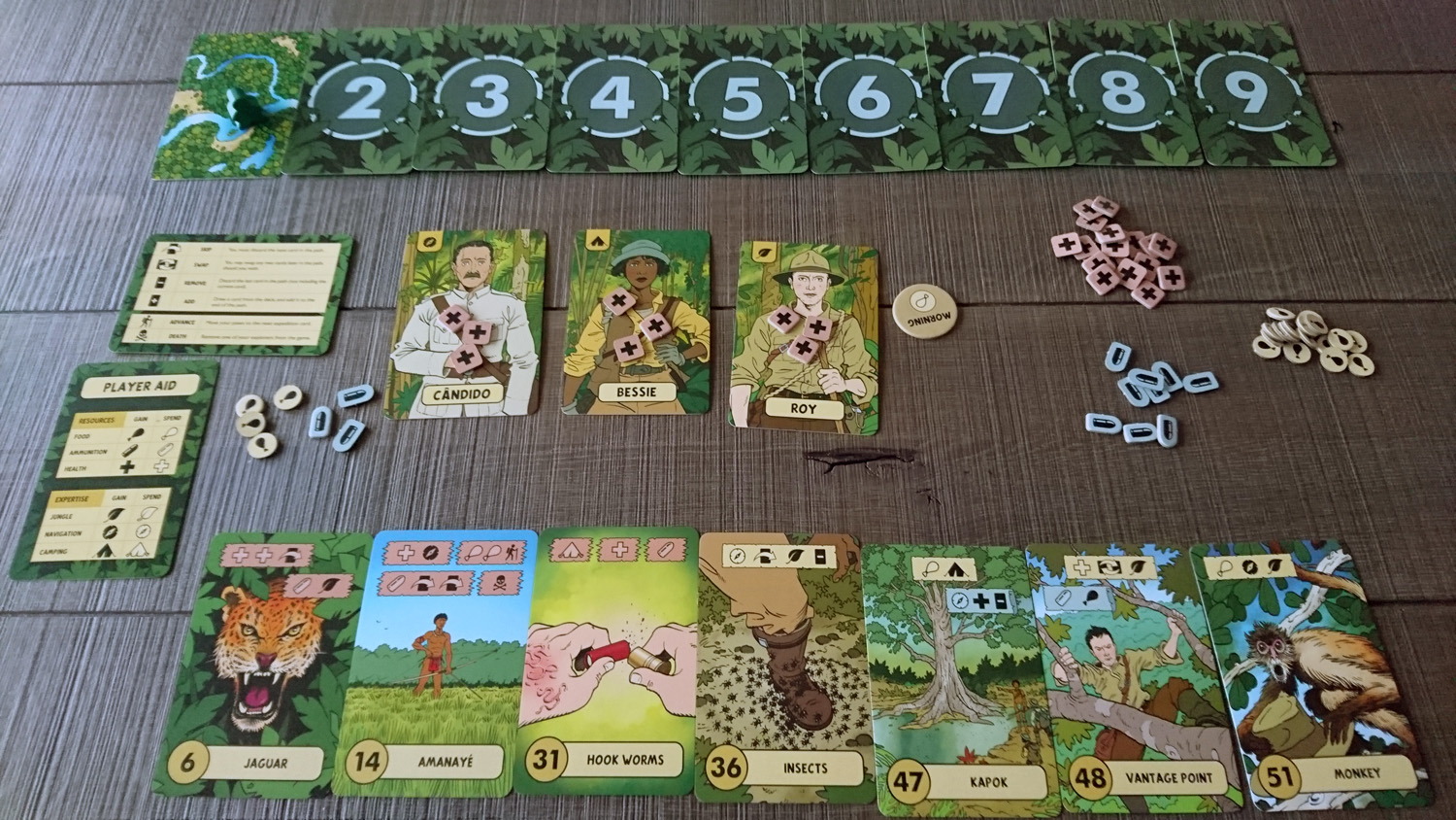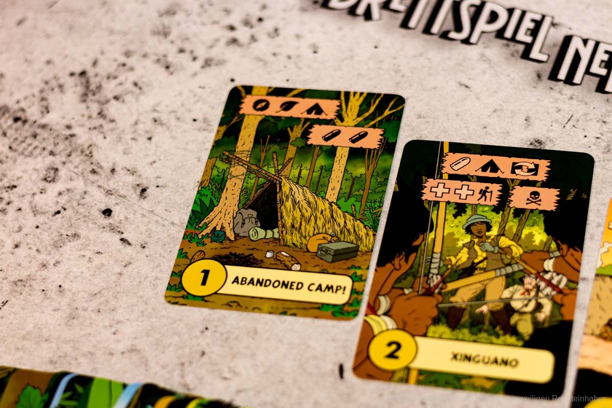 THE LOST EXPEDITION ist 2017 erschienen und ein durchaus interessantes Spiel für 1-5 Spielerinnen und Spieler. Diese müssen als Team von drei Forschern das legendäre El Dorado im Dschungel des Amazonas finden. Das Spiel ist nie als deutsche Ausgabe erschienen, ist aber durch das sprachneutrale Spielmaterial und die kurze Anleitung relativ leicht zu verstehen.