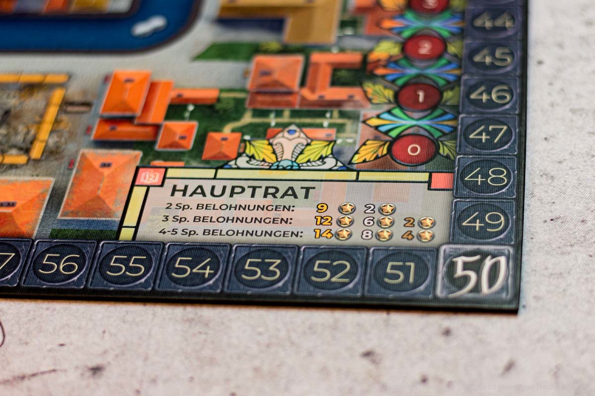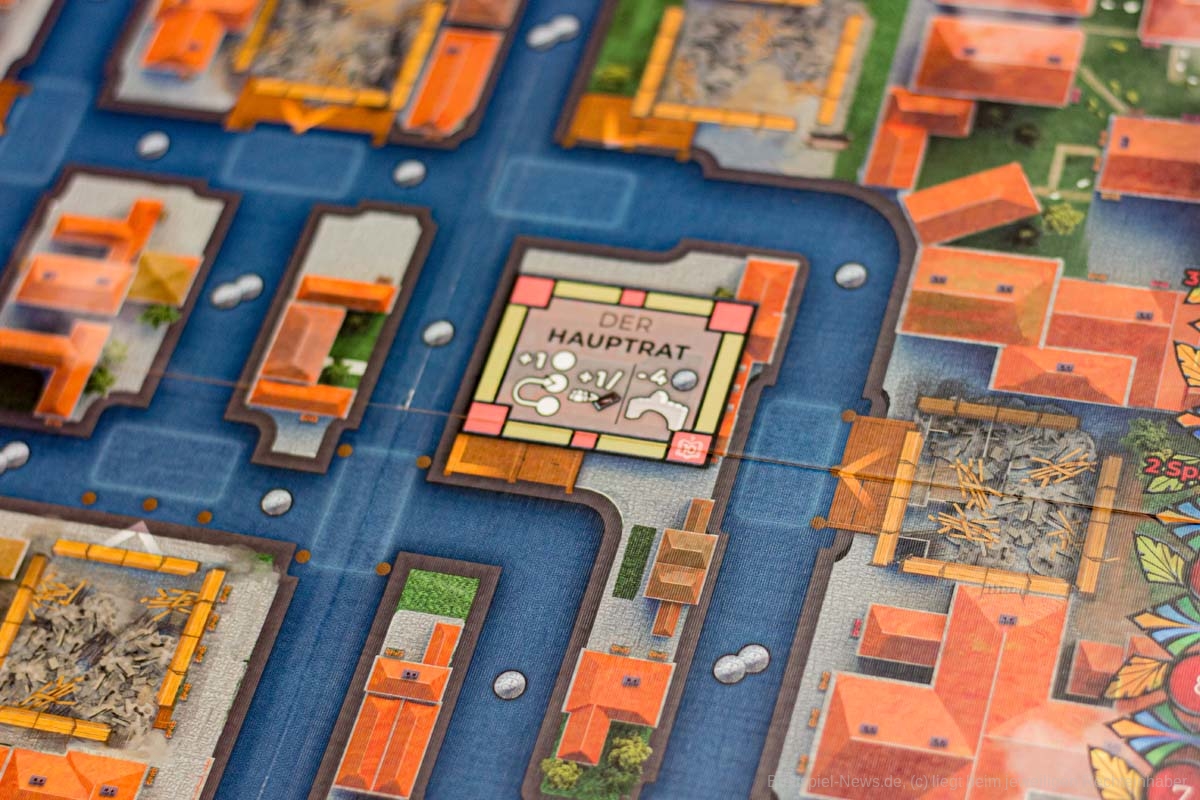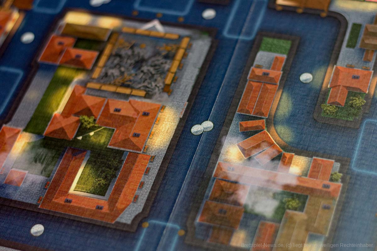 Der Platz auf den Kanälen der Stadt ist jedoch begrenzt und jedes Mal wenn Sie das Boot eines anderen Händlers passieren, wird sich Klatsch und Tratsch verbreiten und das Misstrauen der Inquisition ihnen gegenüber erhöhen. Senken Sie dieses Misstrauen durch Besuche und Spenden an die Kirche oder akademische Einrichtungen oder schlagen Sie die Vorsicht in den Wind und lassen sich für Geld oder Informationen auf unappetitliche Aktivitäten ein. Während des Spiels kann es ein Segen für Ihre politische Karriere sein ein so bekannter Händler zu sein, aber am Ende des Spiels wird an dem verdächtigsten Spieler ein Exempel von der Inquisition statuiert - was Ihren Sieg verhindert, selbst wenn Sie die meisten Punkte haben.