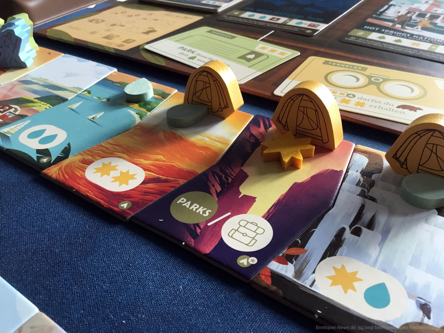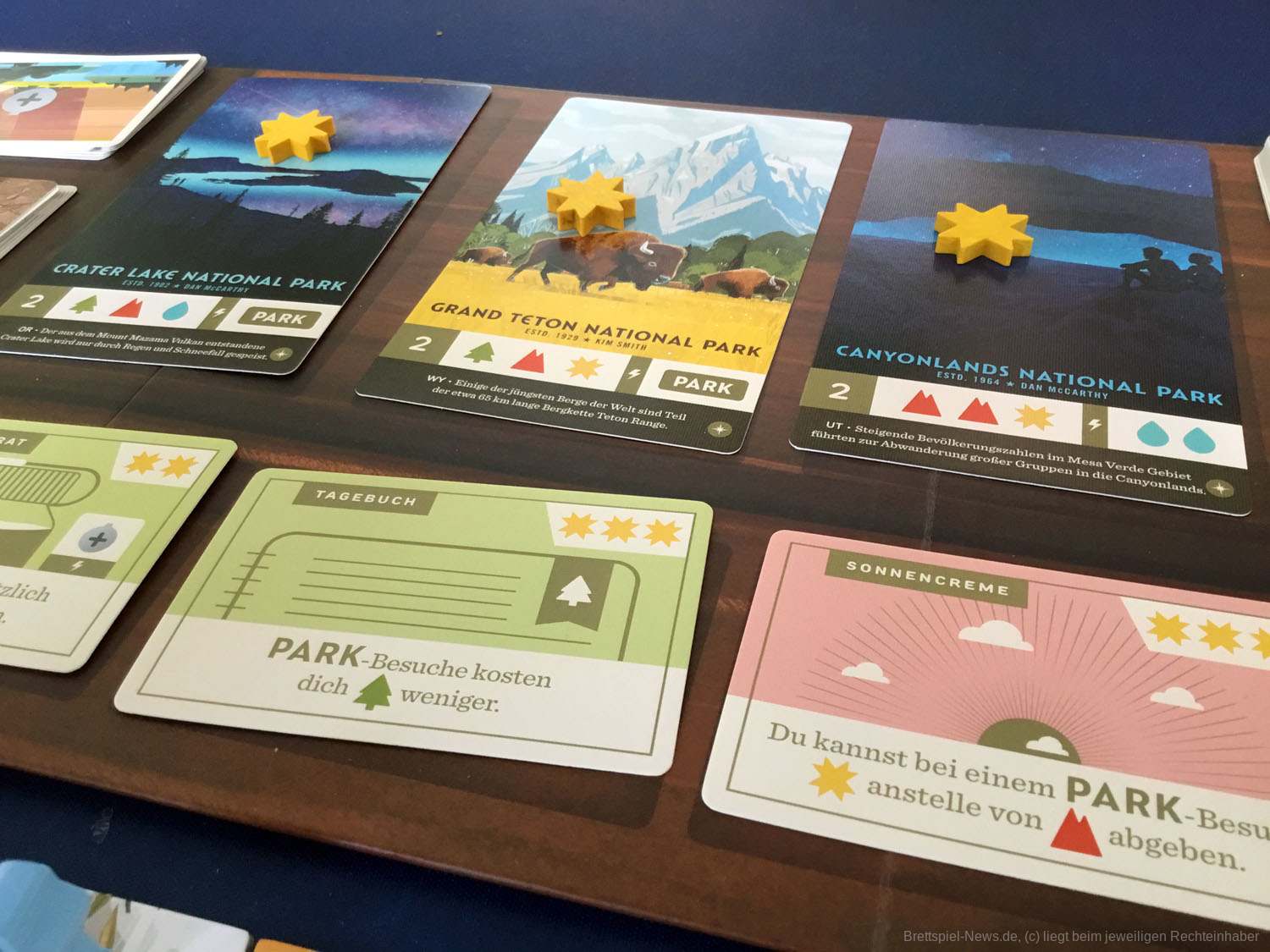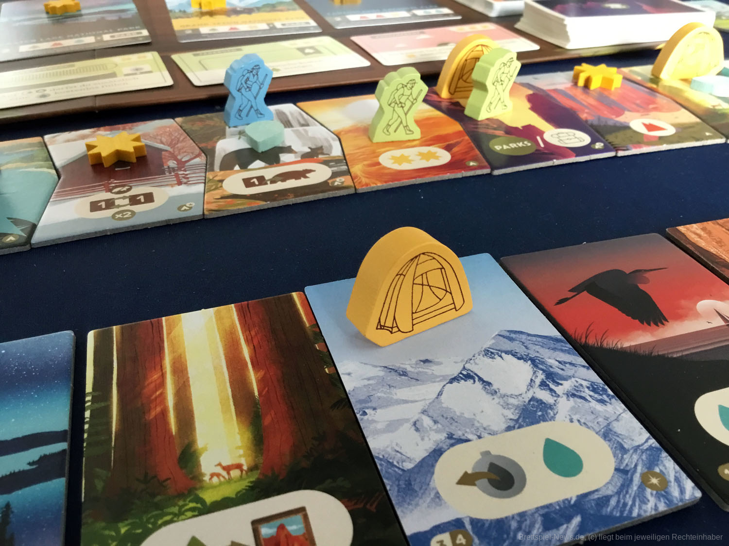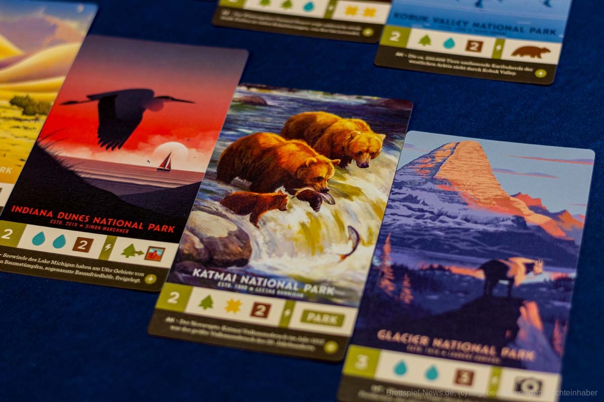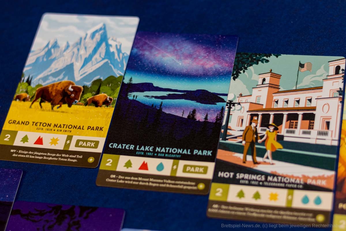 Die Erweiterung STERNSTUNDEN für PARKS von FEUERLAND ist Ende 2020 erschienen. Wir haben nun ein Exemplar und zeigen das Spielmaterial. In der kleinen Box sind 24 zusätzliche Parkkarten von Nationalparks der USA, 26 Vorsatzkarten, vier neue Wildtiere und die Möglichkeit unter freiem Himmel zu zelten enthalten. Die Produktionsqualität ist sehr hochwertig, das Inlay nimmt das Spielmaterial perfekt auf, der UVP liegt bei 19,90 €.