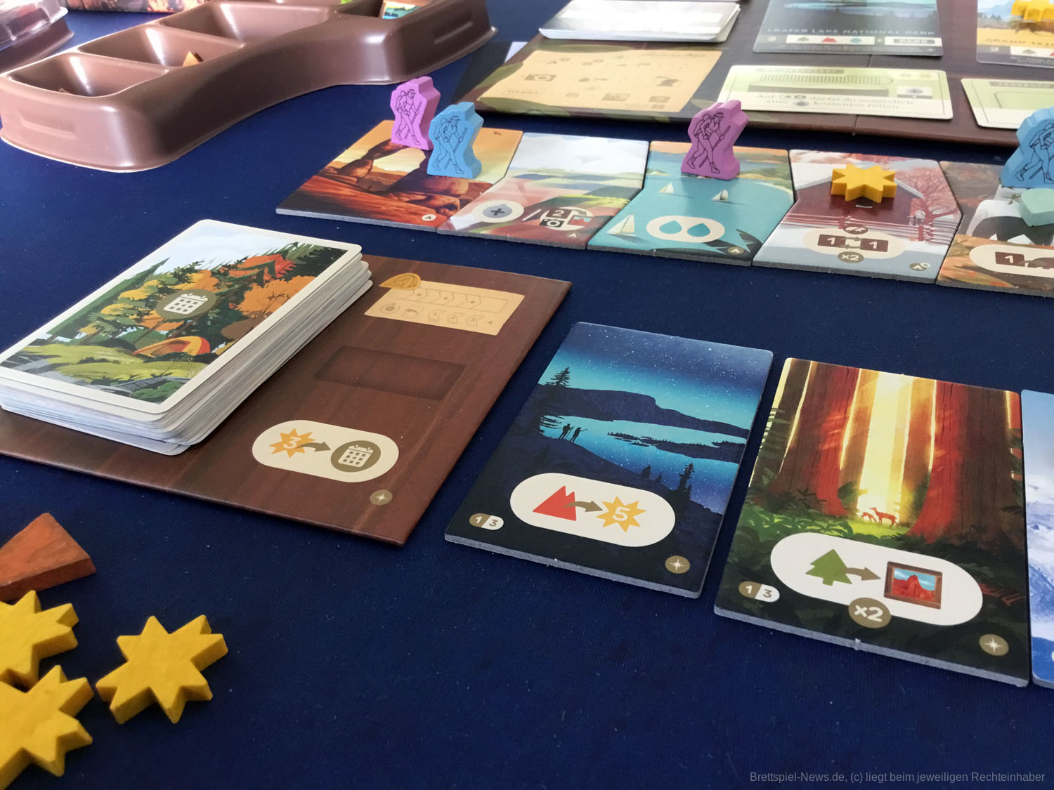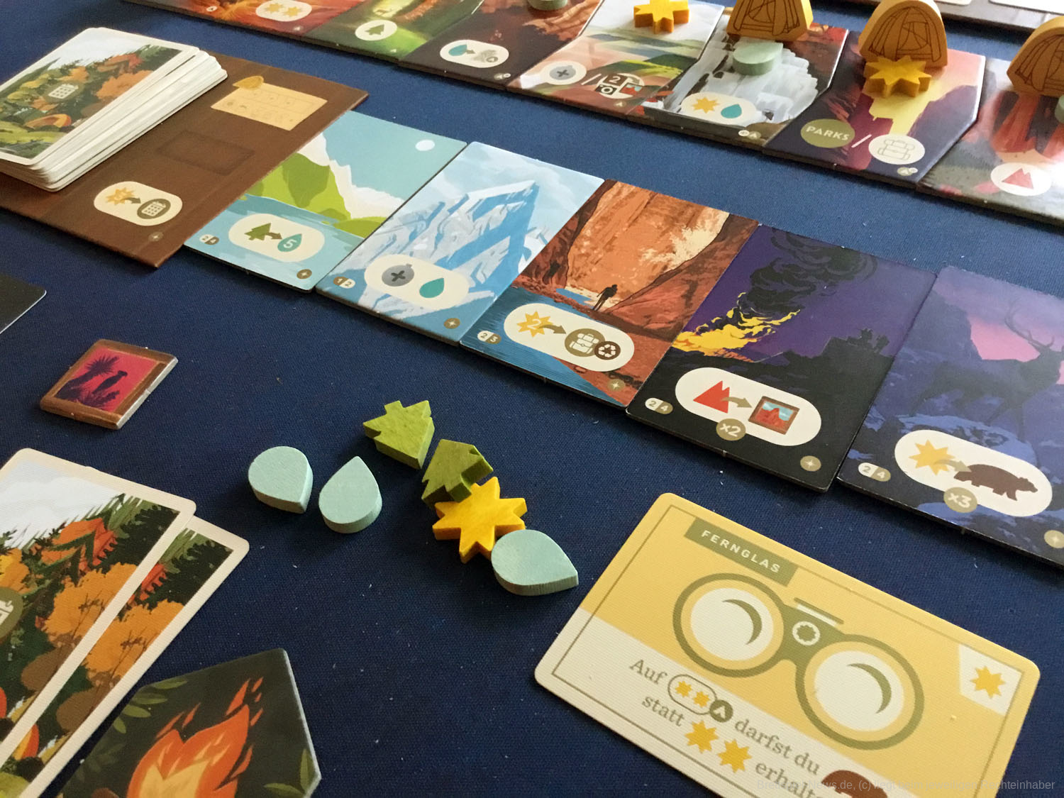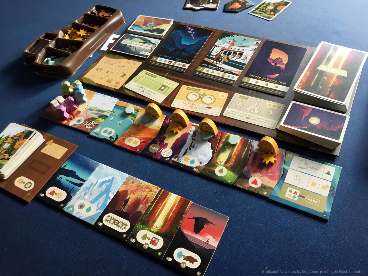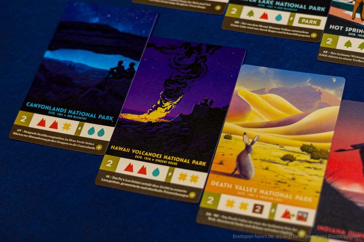 Die Erweiterung STERNSTUNDEN für PARKS von FEUERLAND ist Ende 2020 erschienen. Wir haben nun ein Exemplar und zeigen das Spielmaterial. In der kleinen Box sind 24 zusätzliche Parkkarten von Nationalparks der USA, 26 Vorsatzkarten, vier neue Wildtiere und die Möglichkeit unter freiem Himmel zu zelten enthalten. Die Produktionsqualität ist sehr hochwertig, das Inlay nimmt das Spielmaterial perfekt auf, der UVP liegt bei 19,90 €.