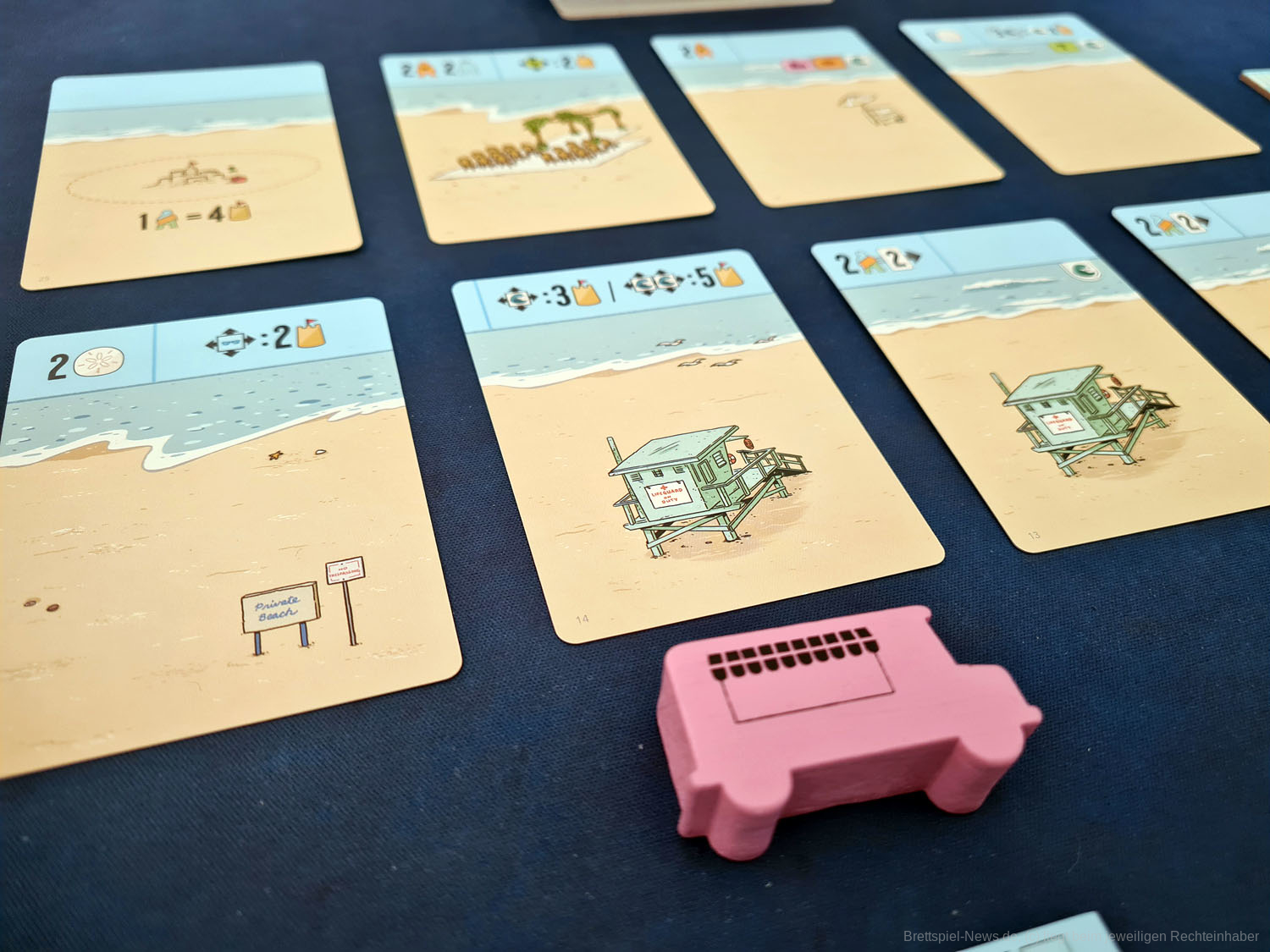 In jedem Zug ziehst du eine Spielkarte aus der Auslage, um entweder den Strand oder die Straße in deinem Abschnitt zu erweitern. Aber nur, wenn Straße und Strand aufeinander abgestimmt sind, bekommst du genügend Siegpunkte, um das Spiel zu gewinnen!