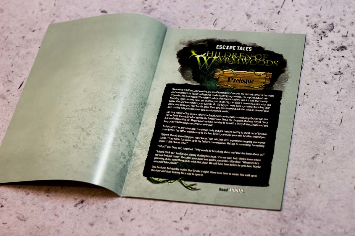 Das Escape-Abenteuerspiel ESCAPE TALES: CHILDREN OF WYRMWOOD konnte in der Spieleschmiede unterstützt werden. Wir haben die englische Version des Spiels erhalten und zeigen einige Bilder des Spielmaterials. Das storylastige Spiel für ein bis vier Spielerinnen und Spieler ab 16 Jahren versetzt euch in Rolle von Gilbert, der in einer kleinen Stadt lebt, die von gefährlichen Wyrmwurzeln bedroht wird. Im Gegensatz zu anderen Exit oder Escape Spielen werden bei ESCAPE TALES: CHILDREN OF WYRMWOOD keine Spielmaterialien zerstört.