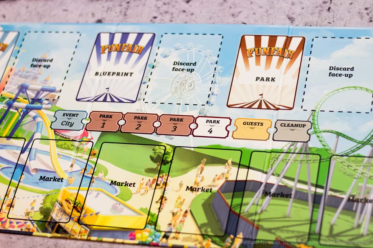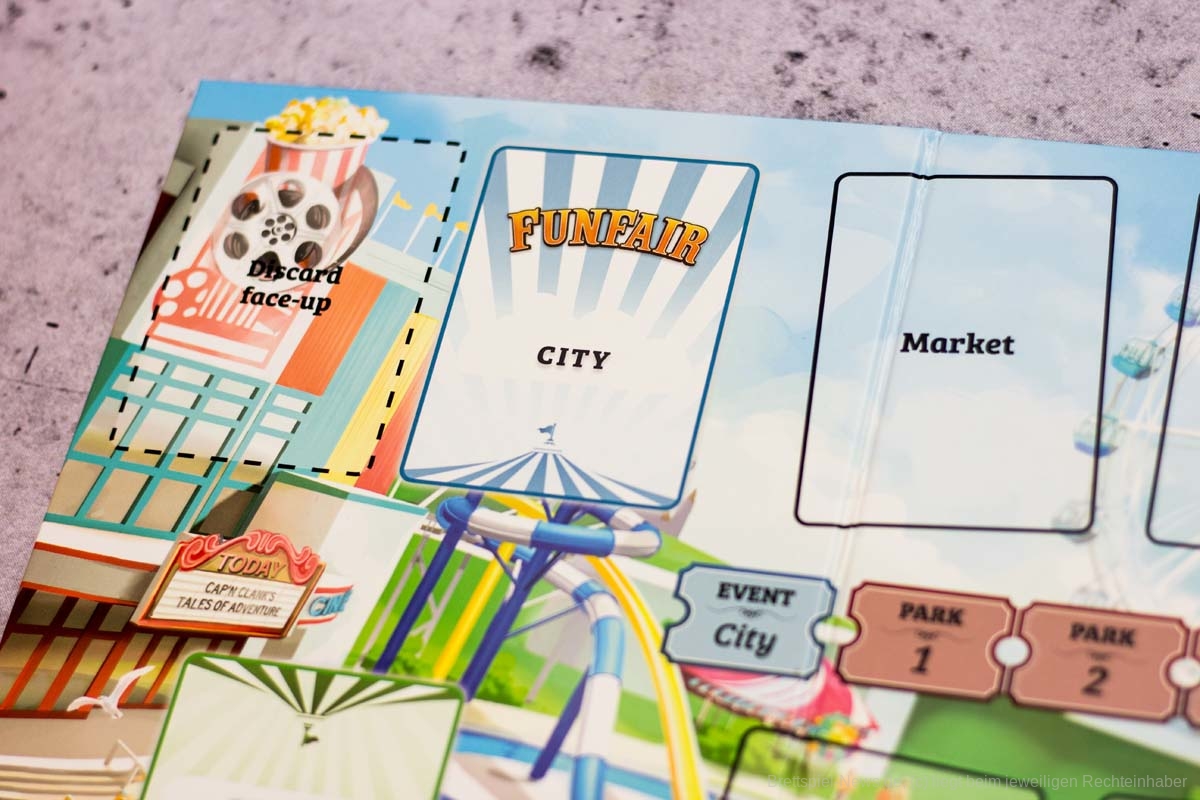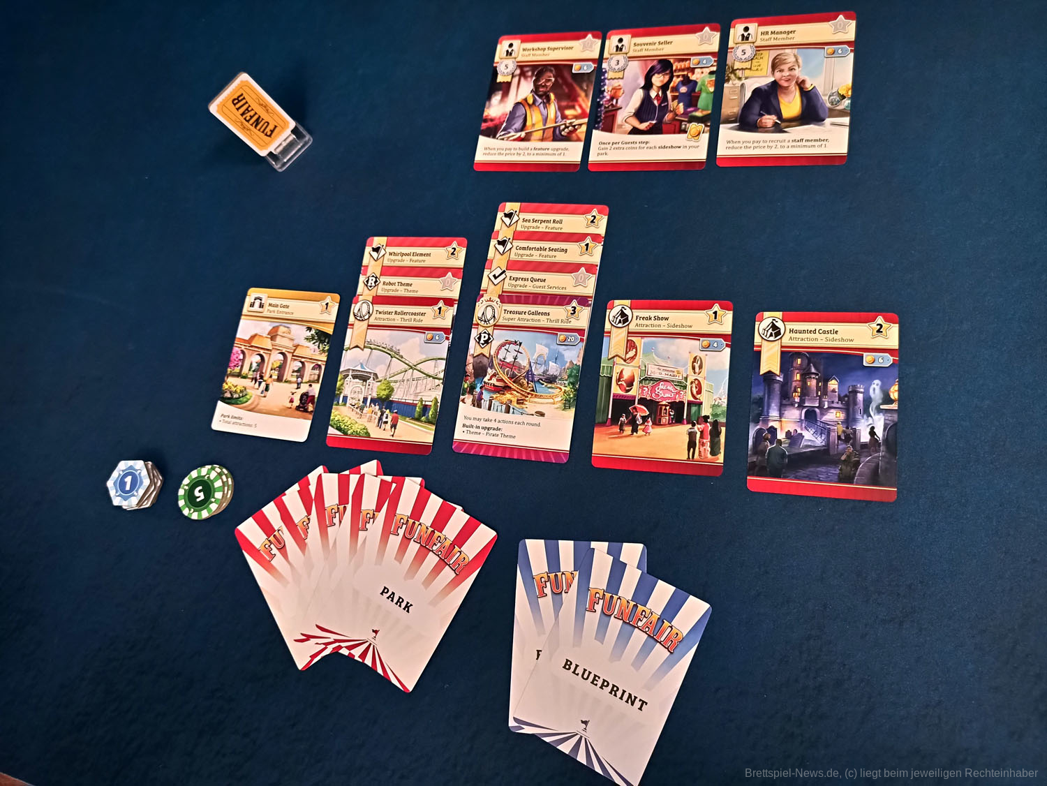 Funfair ist ein eigenständiges Spiel im Unfair-Universum. Es ist eine leichtere und schnellere Einführung in das wahnwitzig modulare Errichten von Themenparks in Unfair. Mit schnellem Aufbau und Spielablauf und nur positiver Spielerinteraktion in Funfair ist es ein lustiges, familienfreundliches Spiel. Neue Ziele, neue Karten, völlig neue Aufbaustrategien und knifflige Kombos werden, laut Verlag, auch erfahrene Spieler und Unfair-Fans vor große Herausforderungen stellen.