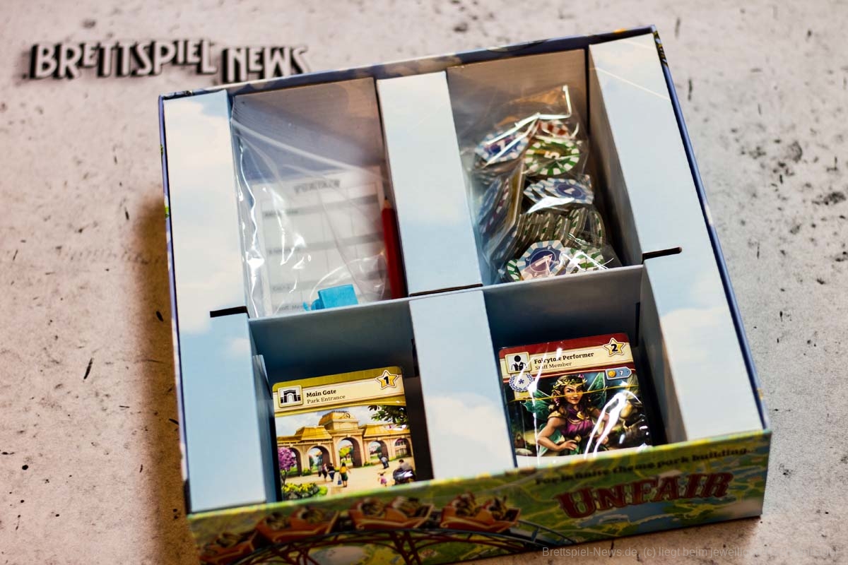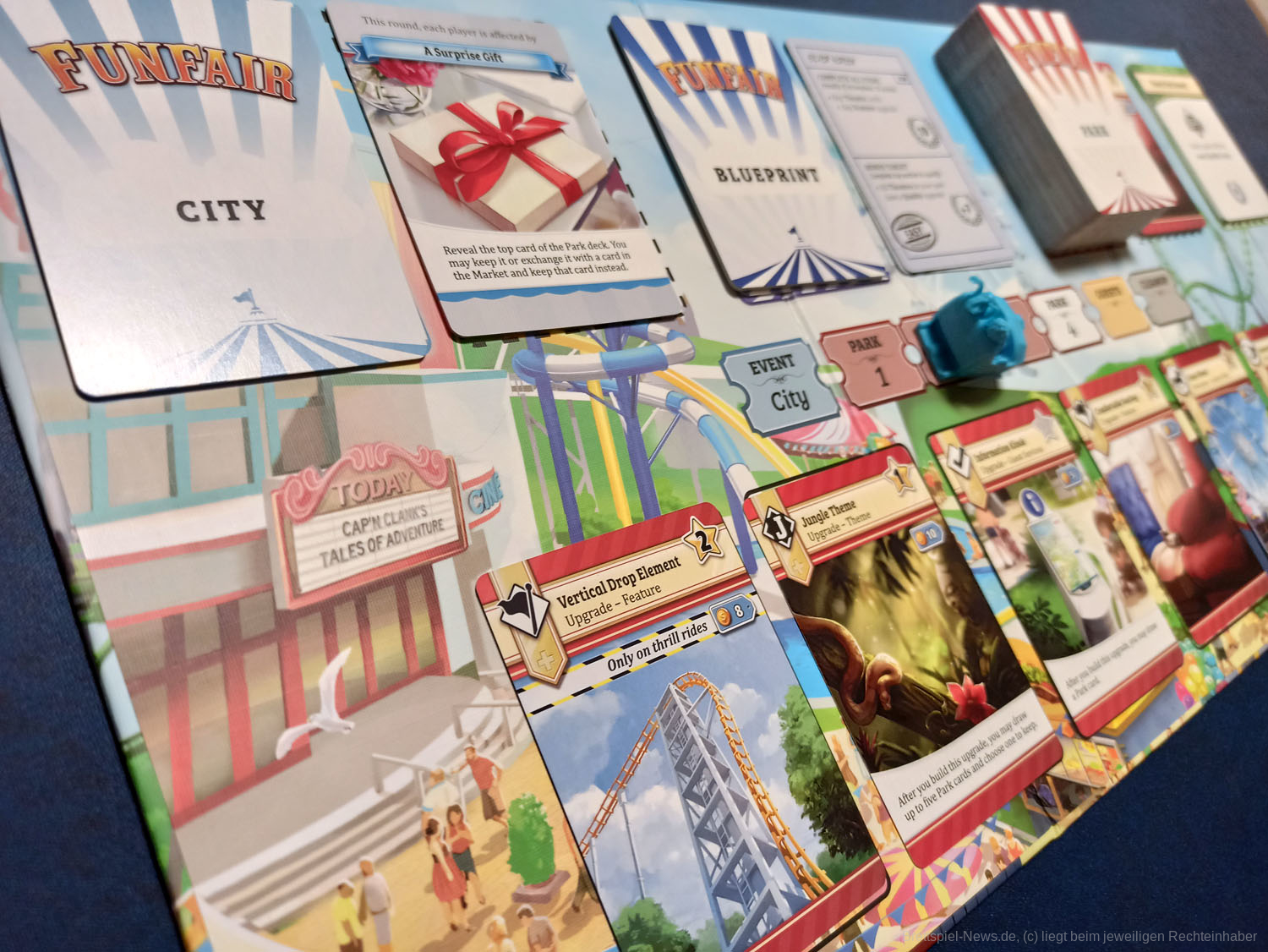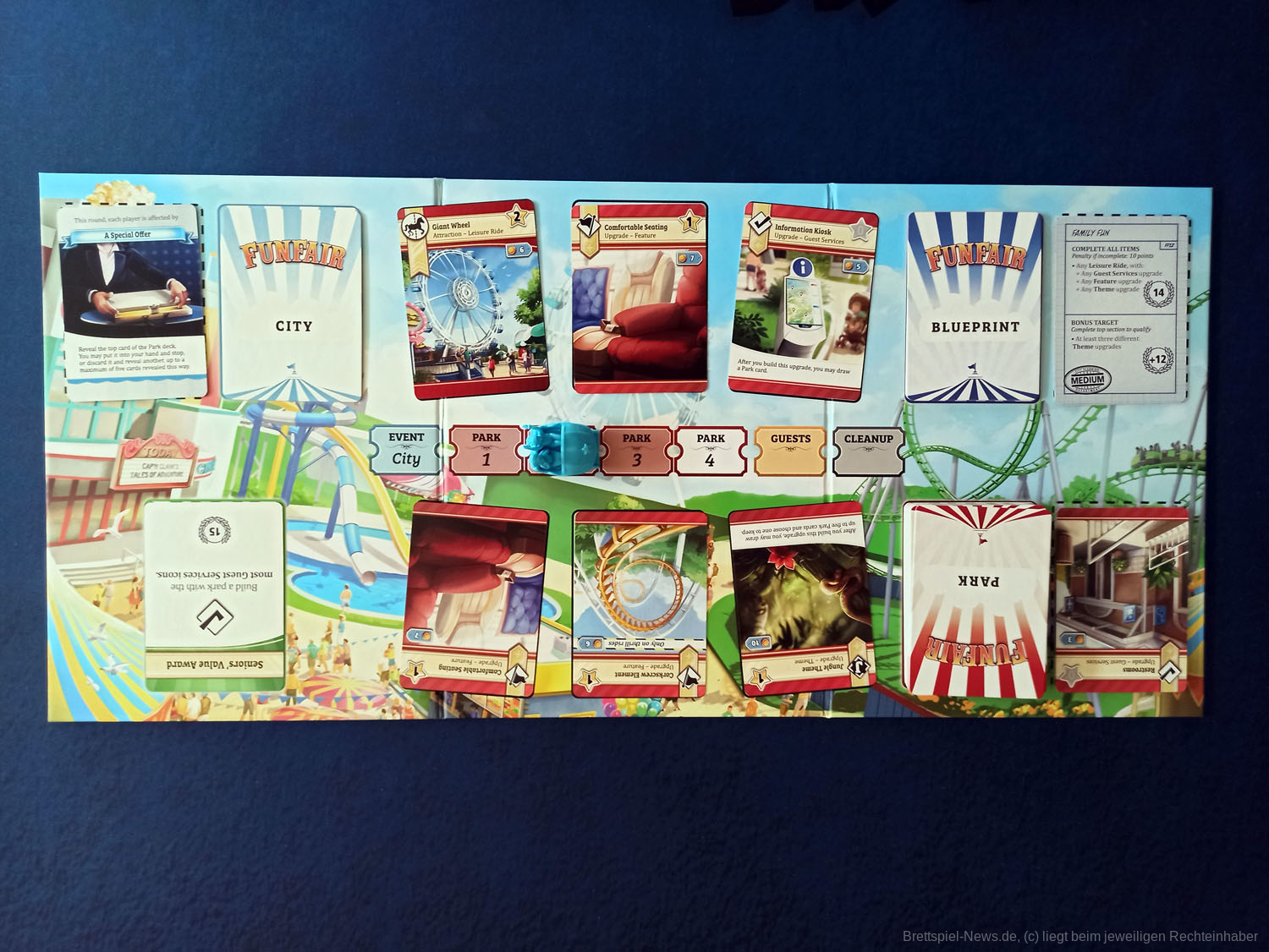 Funfair ist ein eigenständiges Spiel im Unfair-Universum. Es ist eine leichtere und schnellere Einführung in das wahnwitzig modulare Errichten von Themenparks in Unfair. Mit schnellem Aufbau und Spielablauf und nur positiver Spielerinteraktion in Funfair ist es ein lustiges, familienfreundliches Spiel. Neue Ziele, neue Karten, völlig neue Aufbaustrategien und knifflige Kombos werden, laut Verlag, auch erfahrene Spieler und Unfair-Fans vor große Herausforderungen stellen.