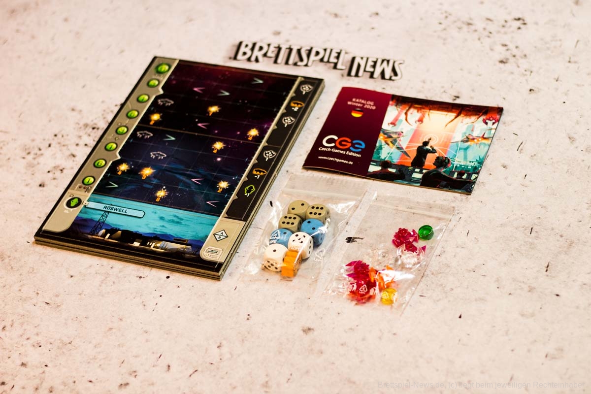 Das Einspieler-Spiel UNDER FALLING SKIES von TOMÁŠ UHLÍŘ ist bei CZECH GAMES EDITION erschienen. Nun ist Nachschub eingetroffen und wird von HEIDELBÄR GAMES in einer deutschen Version vertrieben. Wir haben Bilder des Grundmaterials gemacht.