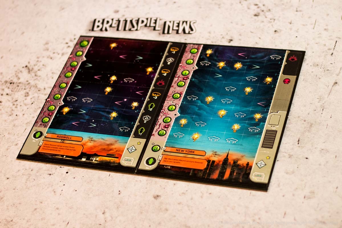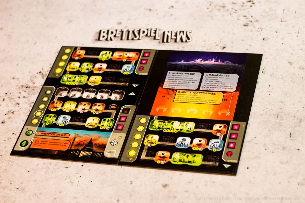 Freut euch auf eine Kampagne voller spannender Missionen, mit ansteigendem Schwierigkeitsgrad und einem Team aus sich abwechselnden Charakteren. Das innovative Würfelplatzierungssystem, bestimmt sowohl die eigenen Aktionen als auch welche feindlichen Schiffe näherrücken. Größere Zahlen geben mehr Möglichkeiten, lassen die Aliens aber auch schneller werden. Das Mutterschiff nähert sich der Stadt jede Runde weiter und erhöht so die Spannung.