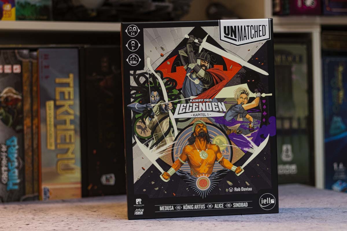 UNMATCHED: KAMPF DER LEGENDEN – KAPITEL 1 ist nun bei IELLO DEUTSCHLAND erschienen, den Vertrieb übernimmt wie gewohnt HUTTER TRADE. Damit wird das 2019 als englische Version erschienene Spiel, lokalisiert seinen Weg nach Deutschland finden. Fans von Kampfspielen dürften sich schon darauf freuen, denn im englischsprachigen Raum wird das Spiel hochgelobt. Es verbindet kartengesteuertes Kampfspiel mit Miniaturen und unglaublich verrückten Charakteren – auf die Videospiele neidisch sein dürften.