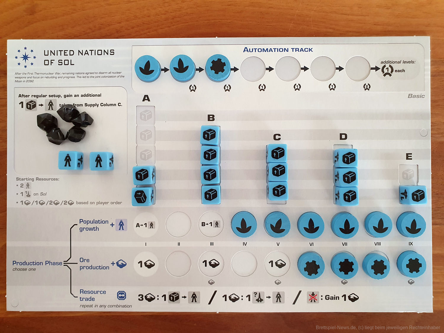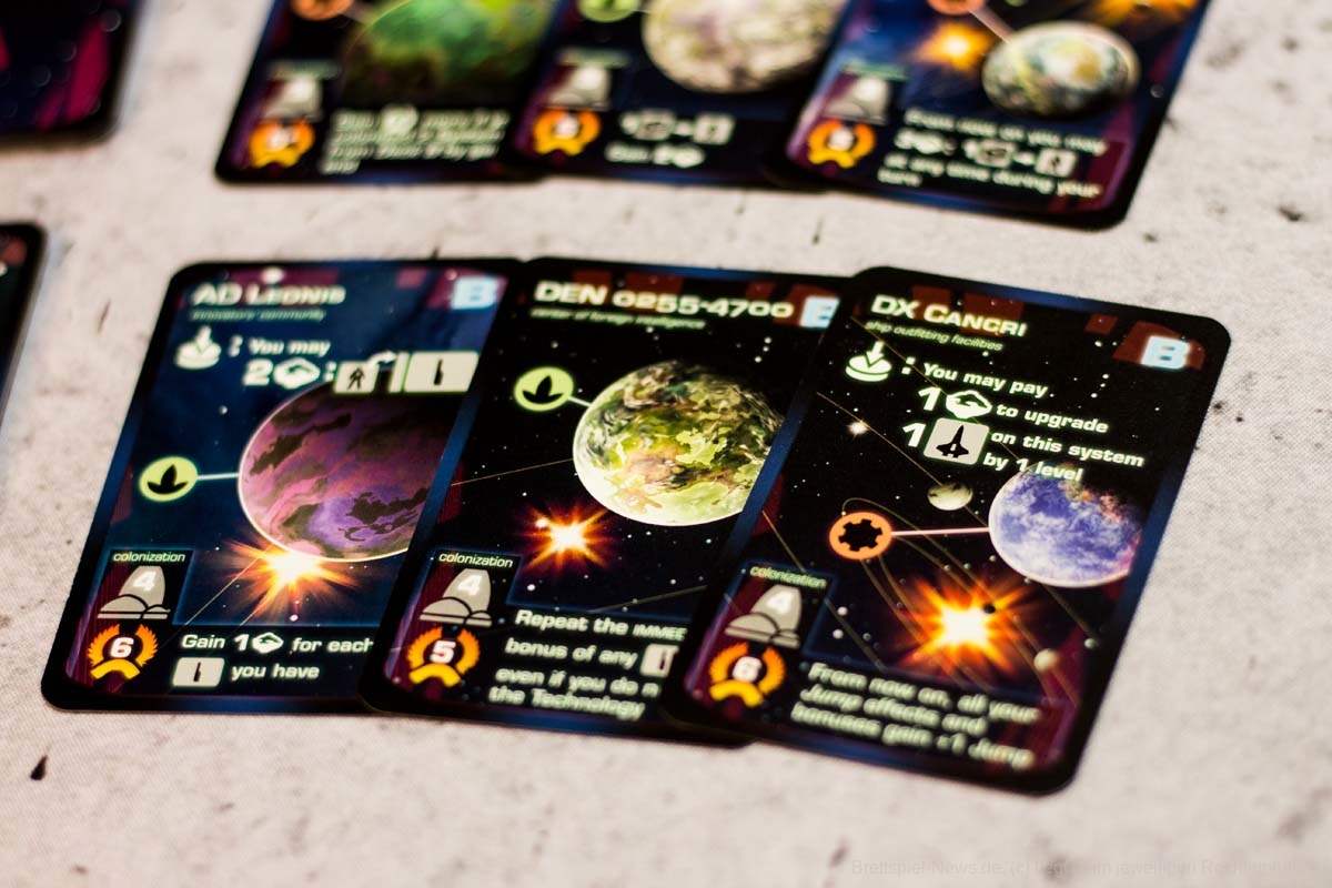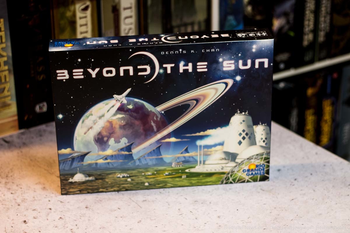RIO GRANDE GAMES hat mit BEYOND THE SUN ein Science-Fiction-Spiel veröffentlicht, dass sich an Kennerspieler wendet. Der Autor ist DENNIS K. CHAN, die Grafik stammt von FRANZ VOHWINKEL. Das Spiel ist im 23. Jahrhunder verortet, die Erde stirbt und die Menschheit macht sich auf den Weg zu einer neuen Heimat. Das Spiel richtet sich an 2-4 Spieler und bietet eine Spielzeit von 90-120 Minuten; der UVP liegt bei 74,99 $.