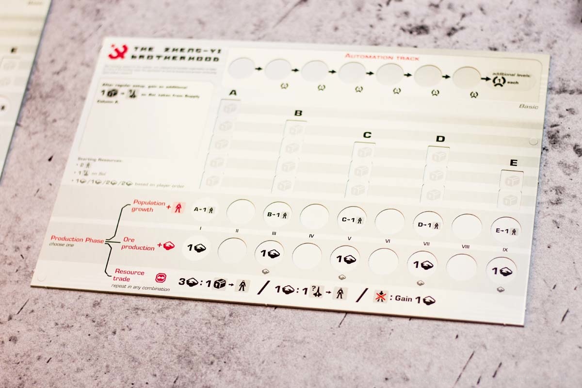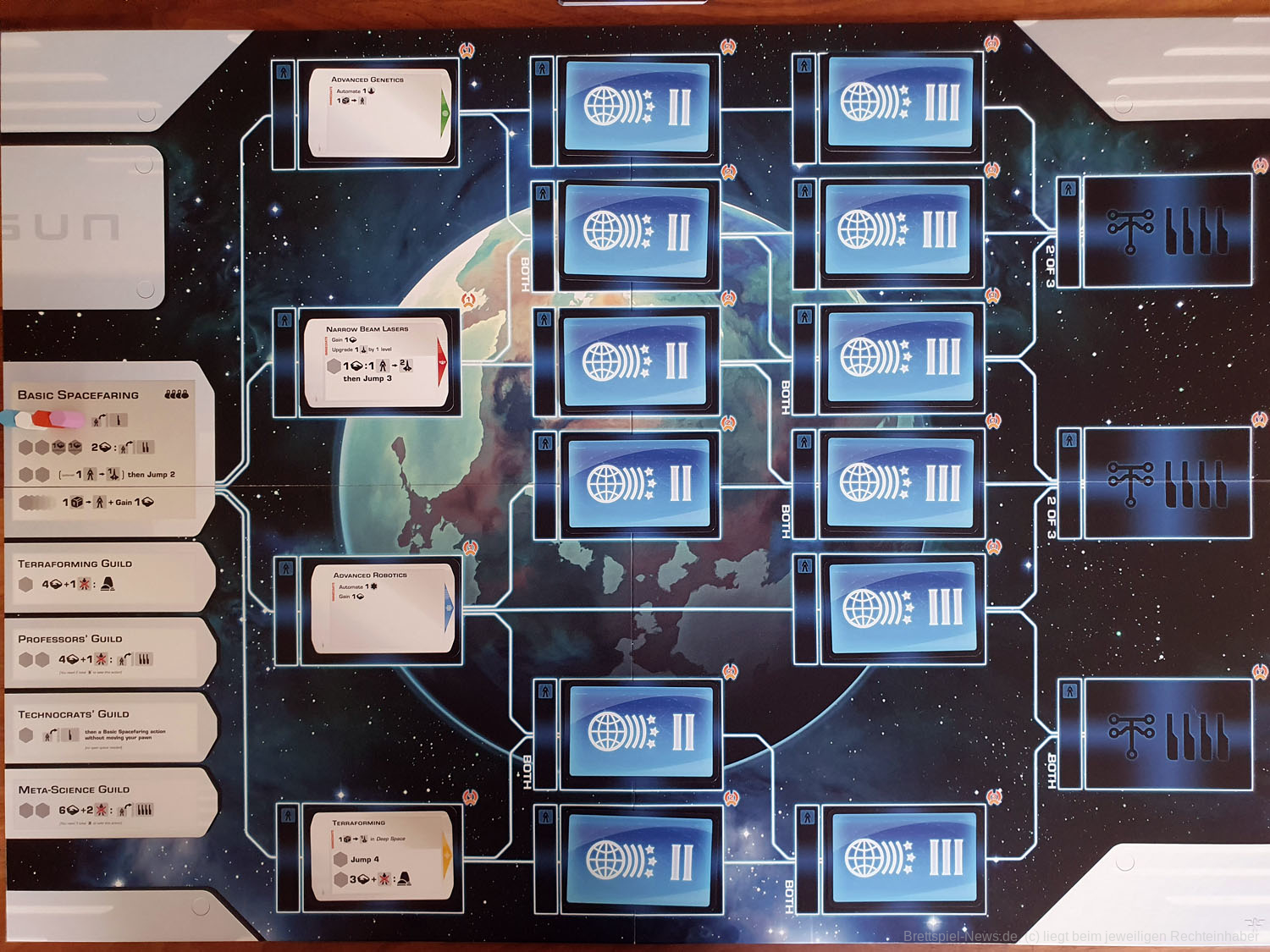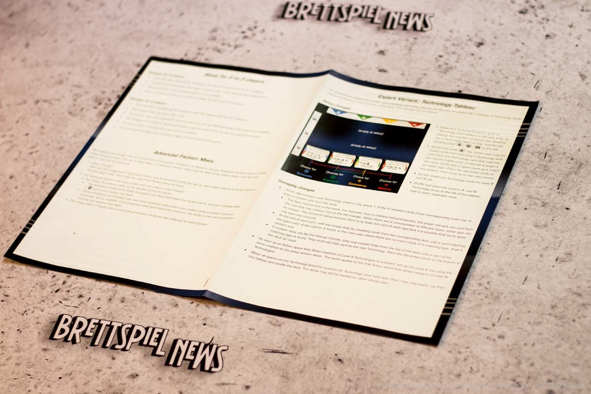 - Innovativer Technologiebaum: Jede entwickelte Technologie fließt in die nächste verfügbare Technologie ein. Dutzende von variablen Technologiekarten sind enthalten, wodurch sich die möglichen technologischen Fortschritte von Spiel zu Spiel unterscheiden.
