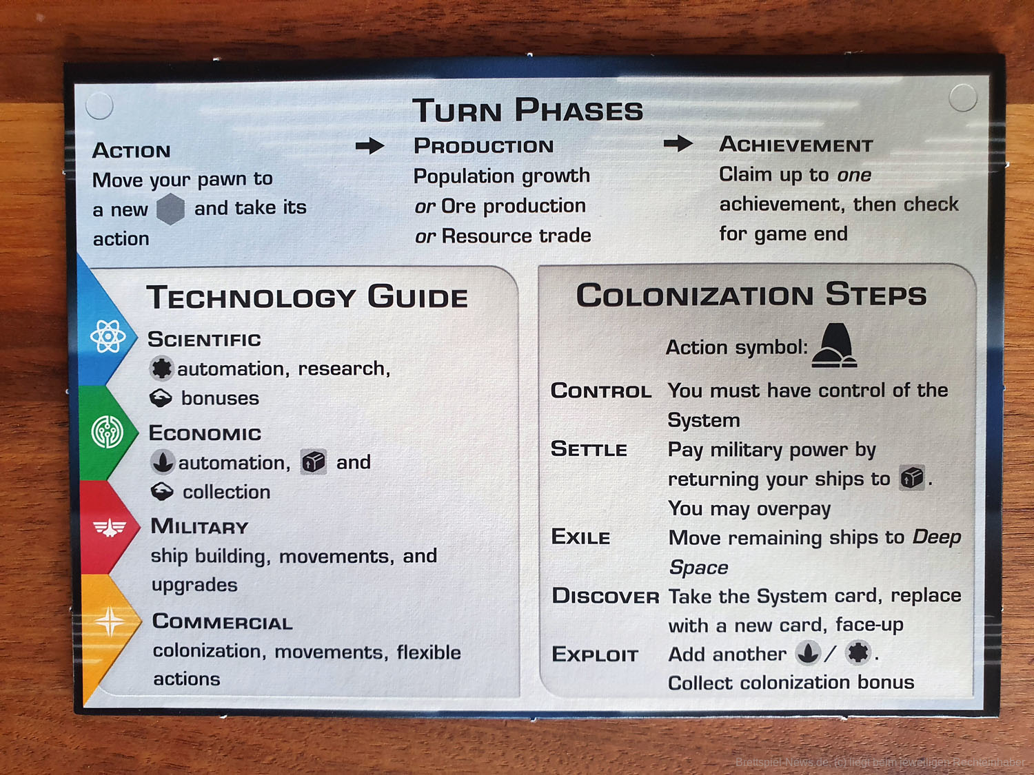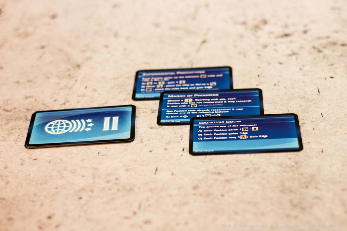 Die Spieler führen abwechselnd eine Aktion durch, die auf dem Technologie-Board verfügbar ist und produzieren dann Ressourcen. Je mehr Technologien erforscht werden, desto mehr Aktionen stehen den Spielern zur Verfügung. Die Aktionen ermöglichen es den Spielern ihre Wirtschaft zu verbessern, Raumschiffe zu bewegen, Systeme zu kolonisieren und neue Technologien zu erforschen. Diese Aktionen gehören ausschließlich dem Spieler, der sie entdeckt, bis die anderen Spieler aufholen! Das Spiel endet, wenn eine Reihe von Errungenschaften erfüllt sind und die Fraktion mit den meisten Punkten den Sieg beansprucht!