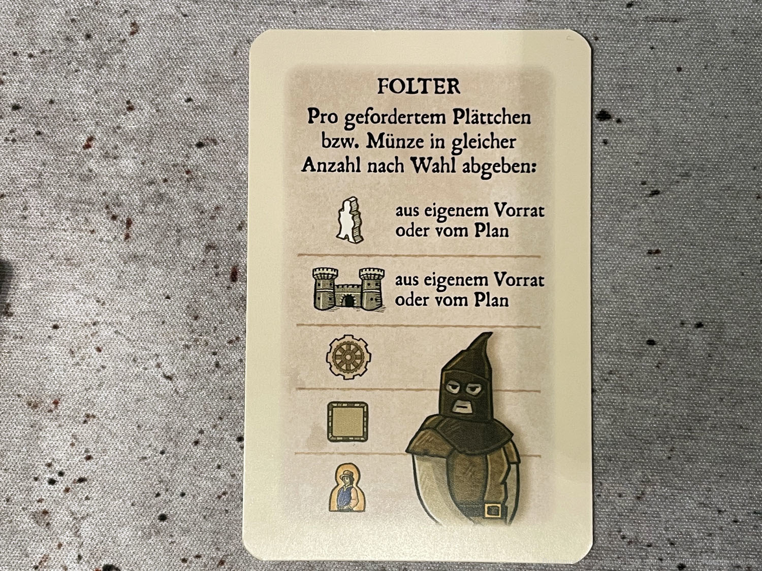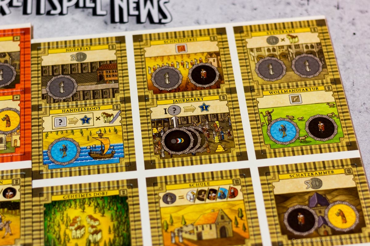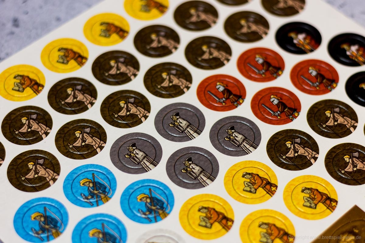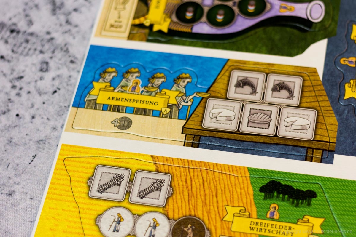 Die Tableaus und die Ortskarten sind aus dicker Pappe und auch Meeples, Festungen und Gebäude wurden aus Holz hochwertig produziert. Das Material in der Grundbox lässt nichts zu wünschen übrig. Die Anleitung beschreibt zunächst die Regeln des Grundablaufs und in den Storyheften finden die Spieler noch einmal den genauen Ablauf mit Hintergrundgeschichten. Nach der ersten Partie haben wir uns endgültig zurechtgefunden, welche Regel in welchem Heft nachzuschlagen ist.