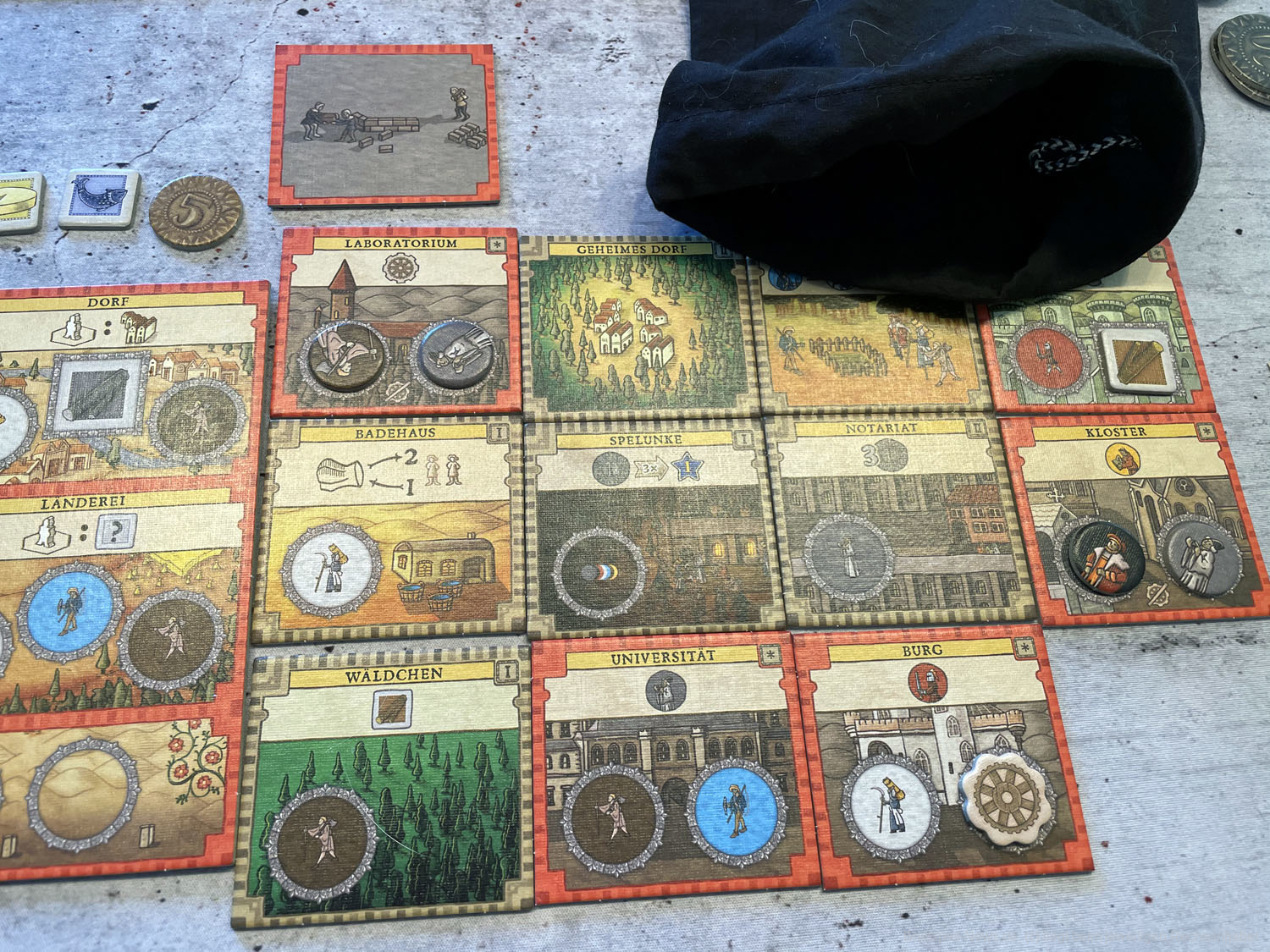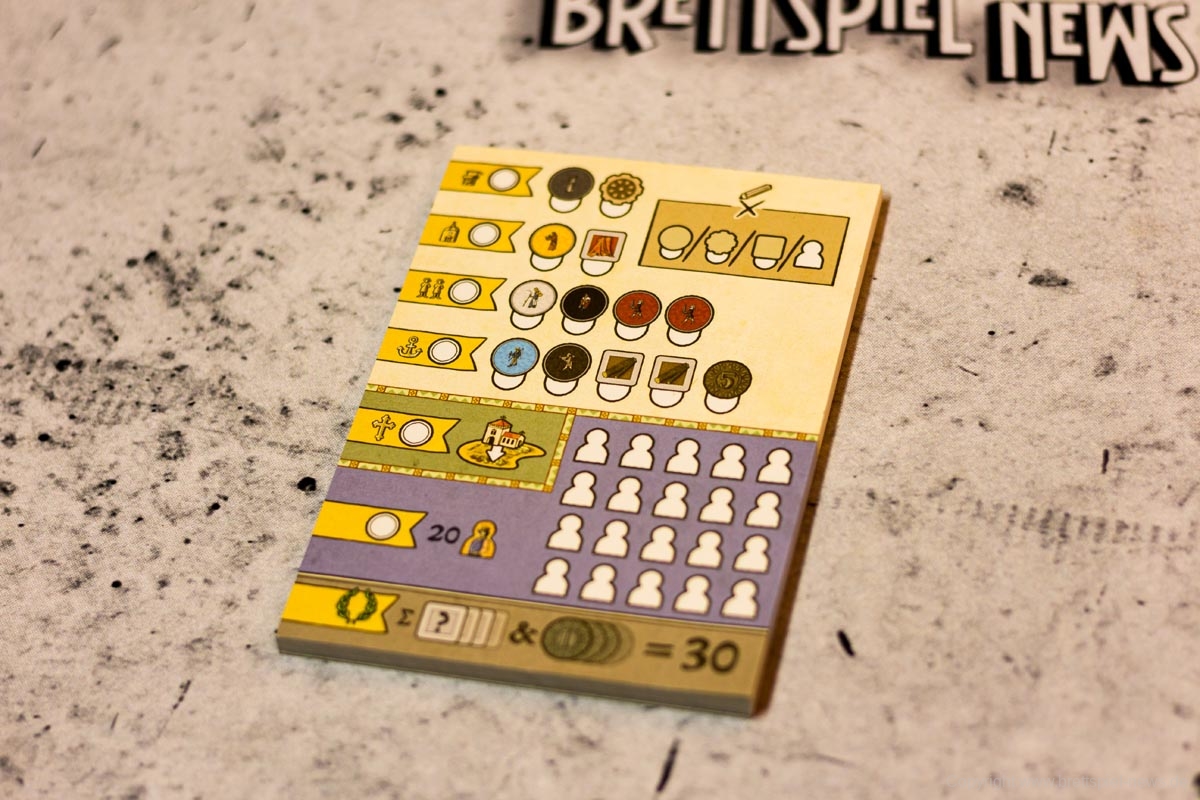 Thematisch kommt dadurch beim ersten Spielen zwar Mittelalterflair auf, da dies rein spielerisch jedoch unnötig ist, wird dies spätestens bei der zweiten Partie eingestellt und das Euro-Game reduziert sich auf die Mechanik. Diese eingebundenen Geschichten innerhalb der Epochen hat generell nur ,,Das erste Königreich“ aufzuweisen, das uns deshalb noch am besten gefallen hat. Insgesamt haben wir jedoch viereinhalb Stunden gespielt und waren bereits nach zwei Stunden des immer wiederkehrenden Plättchenziehens überdrüssig. Das Aufgabenblockblatt mit seinen überbordenden Aufgaben plus die Aufgaben, die für die Epochenaufstiege zu bewältigen sind, stehen einem kurzweiligen Spielgefühl schlicht im Wege. Schade, da das Spiel grundsätzlich interessante und spannende Ansätze verfolgt, dem einfachen Bag-Building dann aber wieder zu viel abverlangt. Der Story-Gehalt schwindet mit jeder weiteren ,,Story“.