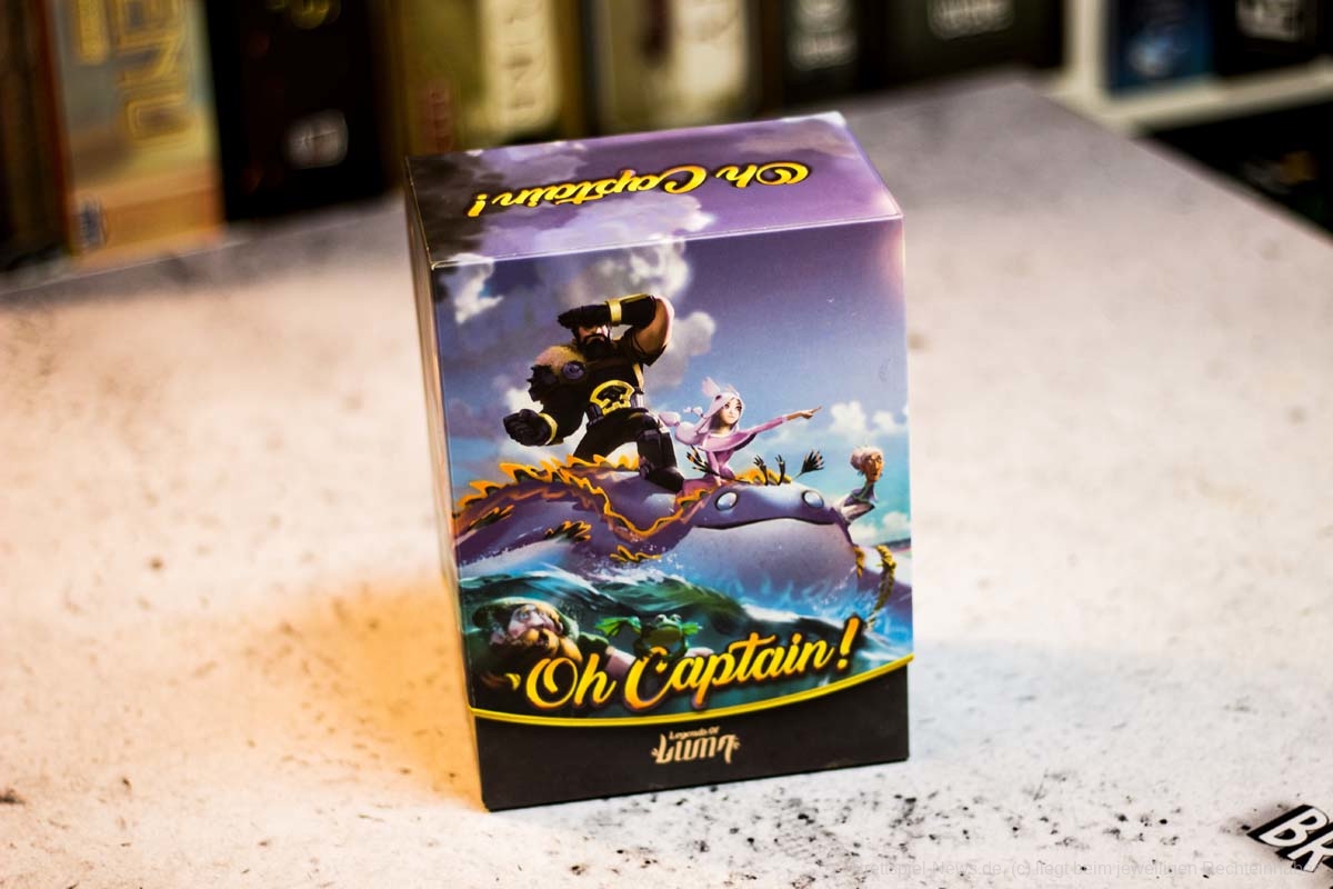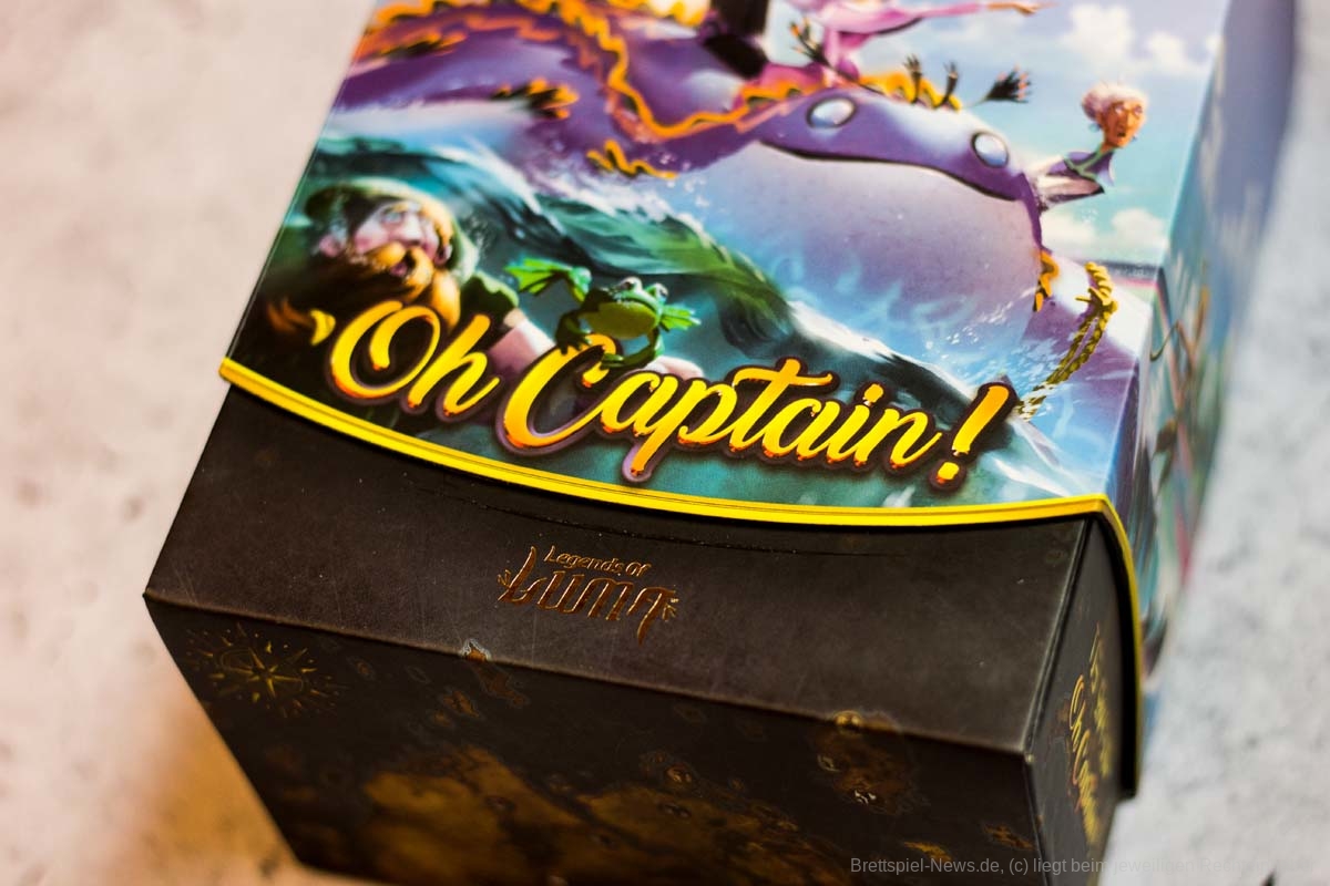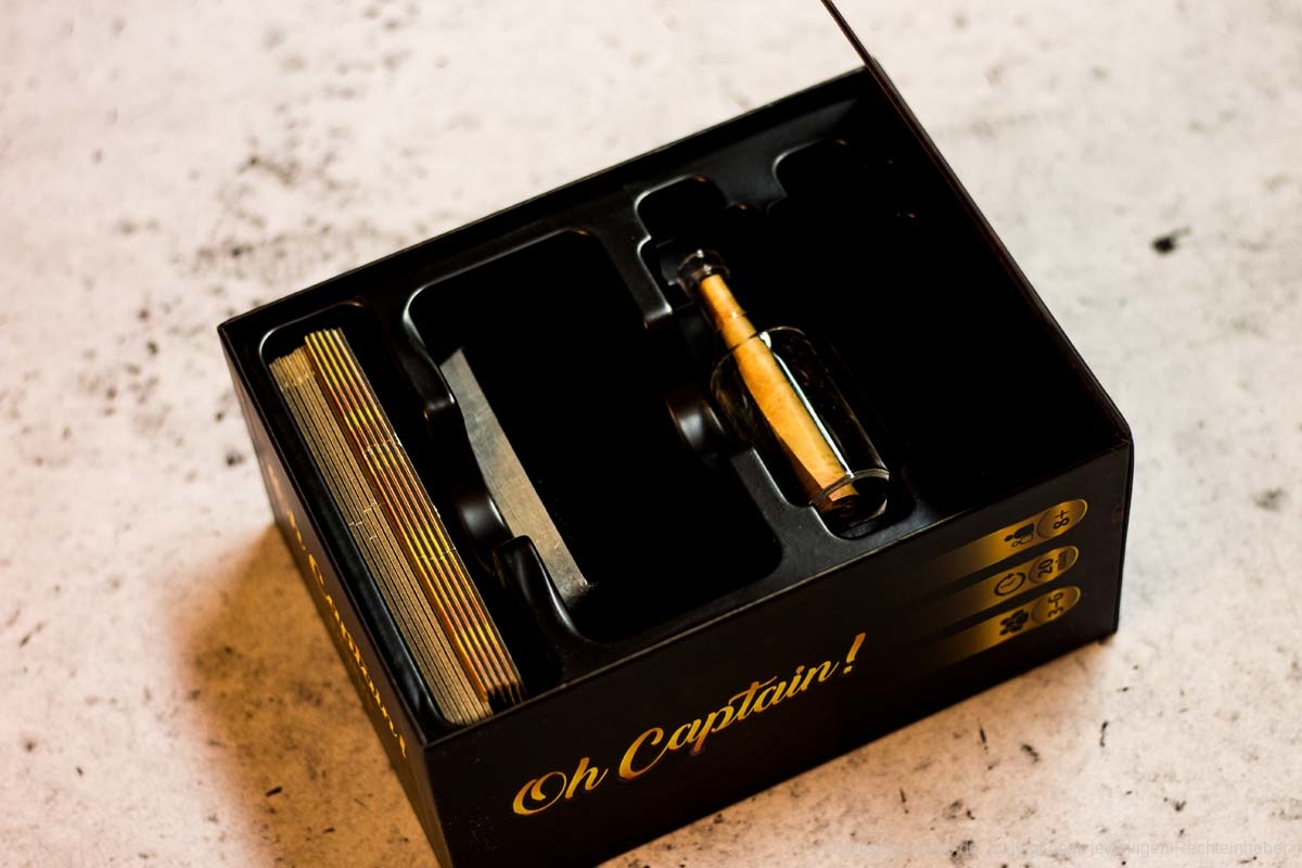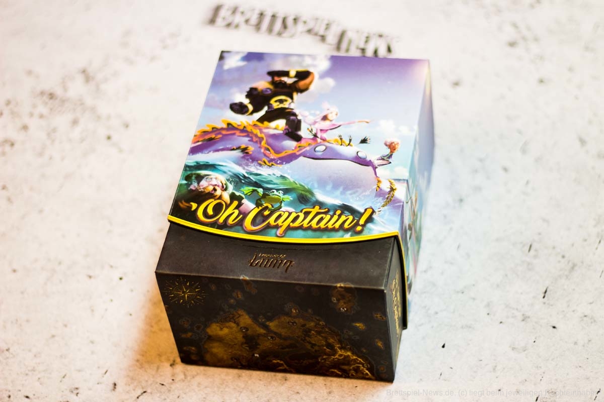 OH CAPTAIN ist 2017 erschienen und bietet Spielpartien von 15-30 Minuten für 3-6 Spielende. Das Spiel von FLORIAN SIRIEIX hat eine ausgefallene Verpackung und hübsches Spielmaterial. Es handel sich um einen Mix aus Bluffen, Fantasy, Kartenspiel und Piraten.
