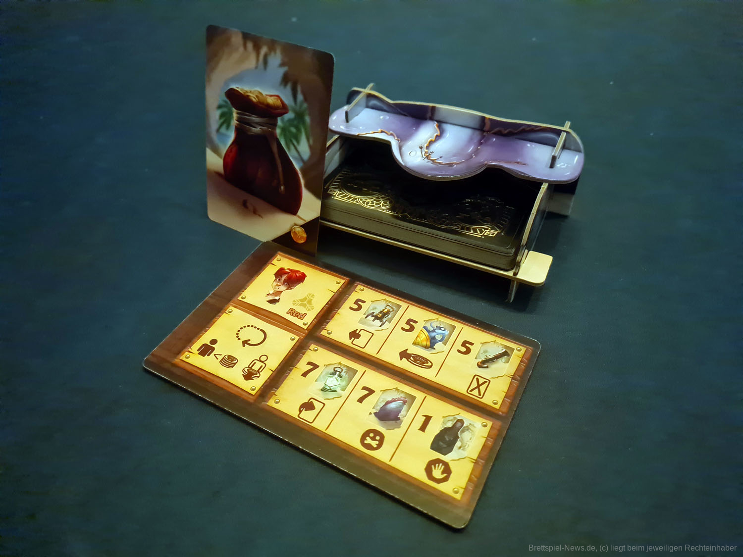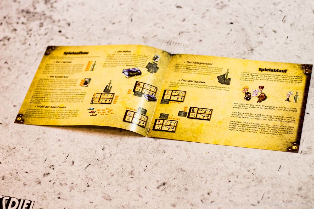 Unsere unerschrockenen Abenteurer haben sich auf eine Reise begeben und die versteckte Höhle eines mythischen Monsters gefunden. Es gibt so viele seltsame Dinge dort! Der Kapitän erlaubt der Mannschaft, den Ort zu durchsuchen und ihm zurückzubringen, was sie gefunden haben, aber indem sie den Kapitän bluffen, werden sie versuchen, den besten Teil der Beute für sich zu behalten...