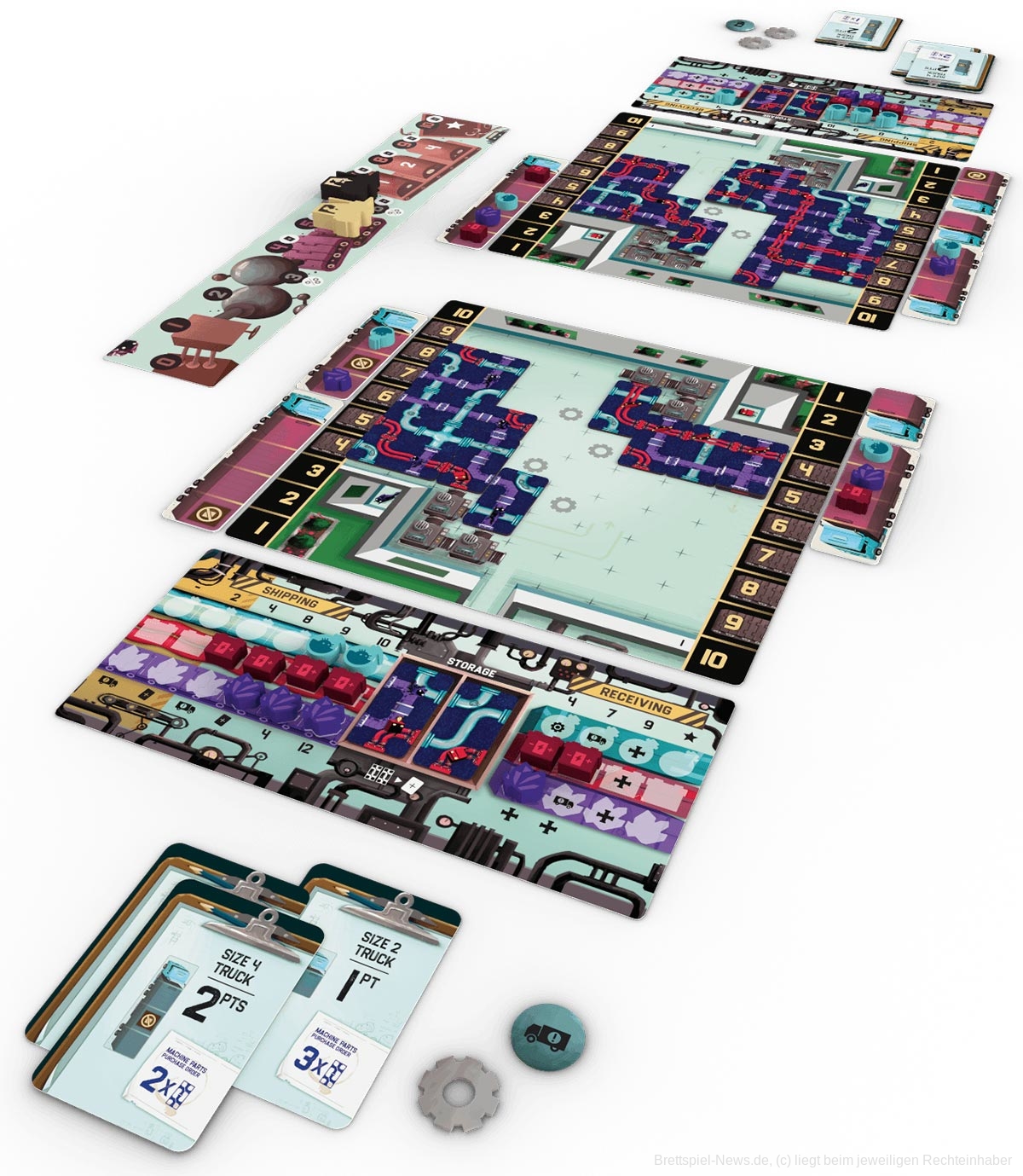 Verrückte Fracht ist ein Spiel für zwei Spieler, bei dem Du gegen Deinen Gegner antrittst, indem Du die Infrastruktur Deiner Anlage errichtest, LKWs im richtigen Moment herbeirufst und dabei das perfekte Timing für den Versand und den Empfang der Fracht hast, um die meisten Punkte zu erzielen. Verbinde ein verwobenes Netz von Linien mit deinen Versand- und Empfangsräumen. Spiele mit zweifarbigen Förderplättchen oder mit allen drei Farben, um ein fortgeschrittenes Spielerlebnis zu erhalten. Verschicke Deine individuell geformten Frachtplättchen an deinen Gegner, um seine Logistikpläne zu durchkreuzen!
