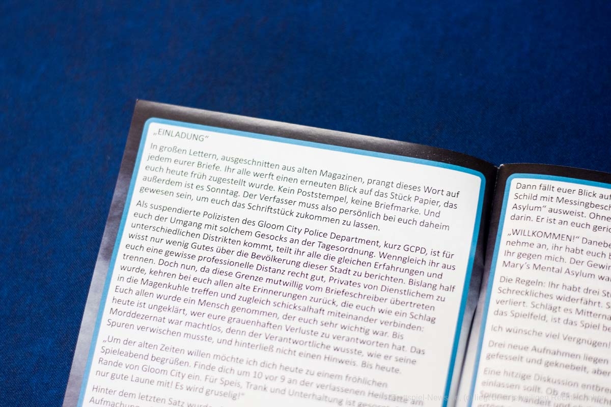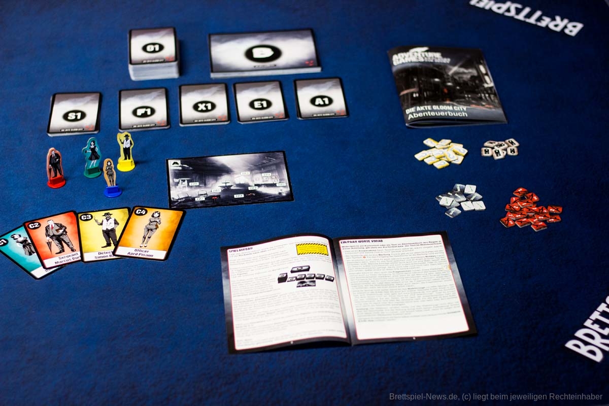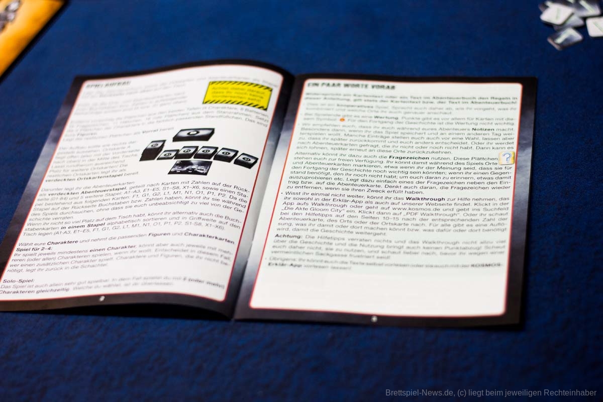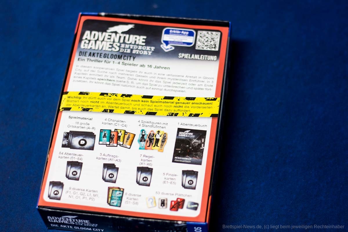 Das neue ADVENTURE GAMES - DIE AKTE GLOOM CITY Spiel von KOSMOS ist mittlerweile erschienen. Für einen UVP von 15 € bietet das kleine Spiel eine Spielzeit von 3x 90 Minuten für 1-4 Erwachsene und Heranwachsende ab 16 Jahren. Dieser Teil wurde von PHIL WALKER-HARDING, MATHEW DUNSTAN, HAUKE GERDES und KAYLEIGH ANDERSON kreiert. Die Spielbox ist gut gefüllt mit Spielmaterial und optional bietet das Spiel eine APP, in der die Texte vorgelesen werden.