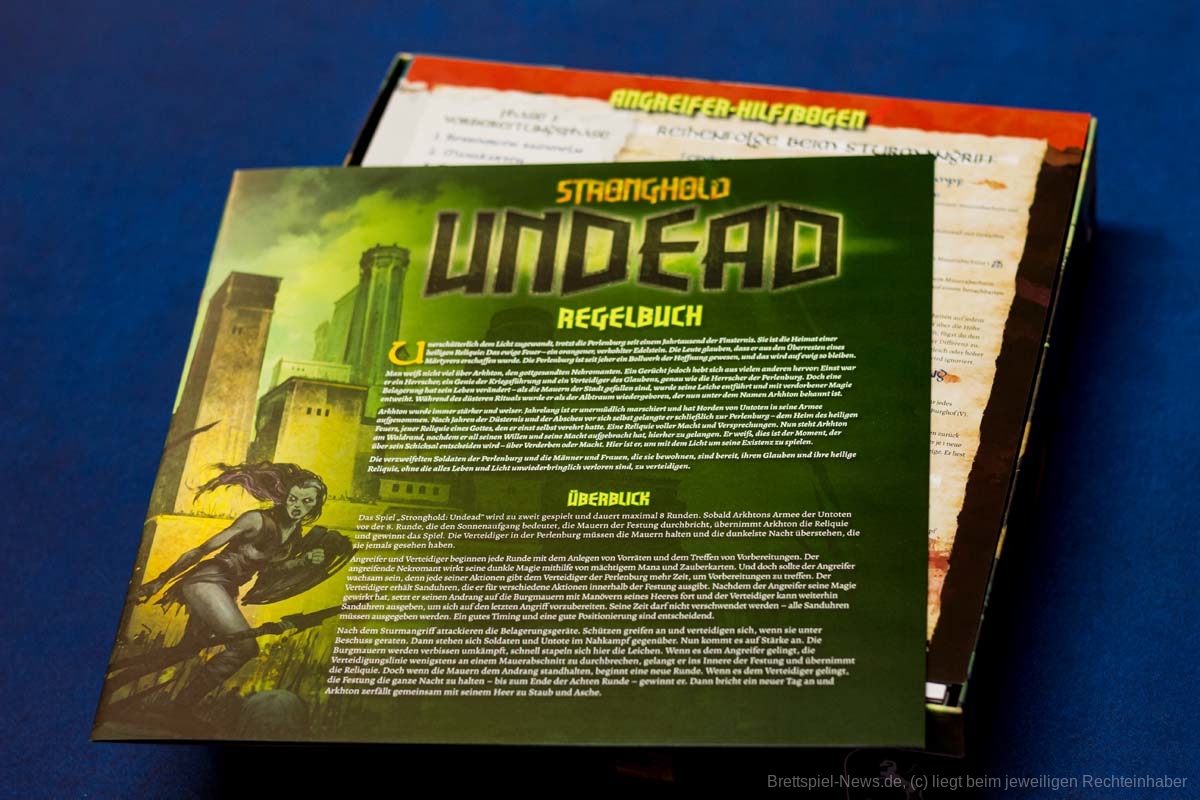 Bei PEGASUS SPIELE ist die deutsche Version der Second Edition von STRONGHOLD: UNDEAD erschienen. Das Spiel richtet sich an zwei Spielende und dauert pro Partie 90 Minuten oder länger. 2010 ist STRONGHOLD erstmals erschienen und durchaus gut angekommen. Die Grafik wurde überarbeitet.