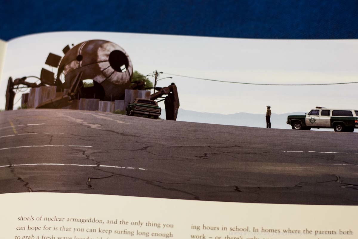 Simon Stålenhags Bilder der schwedischen Vorstadt der 1980er Jahre, bevölkert von fantastischen Maschinen und seltsamen Wesen, haben sich im Internet wie ein Lauffeuer verbreitet. Stålenhags Darstellung einer Kindheit vor dem Hintergrund alter Volvo-Autos und Overalls, kombiniert mit seltsamen und mystischen Maschinen, schafft eine einzigartige Atmosphäre, die sowohl sofort wiedererkennbar als auch völlig fremd ist.