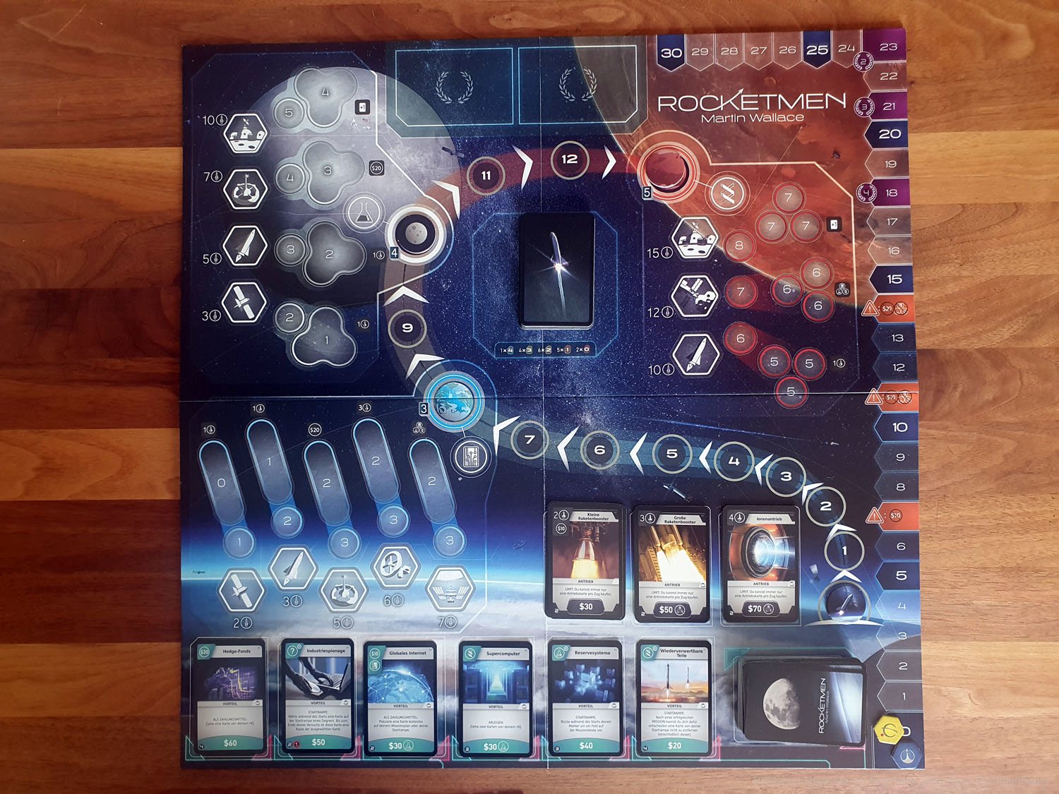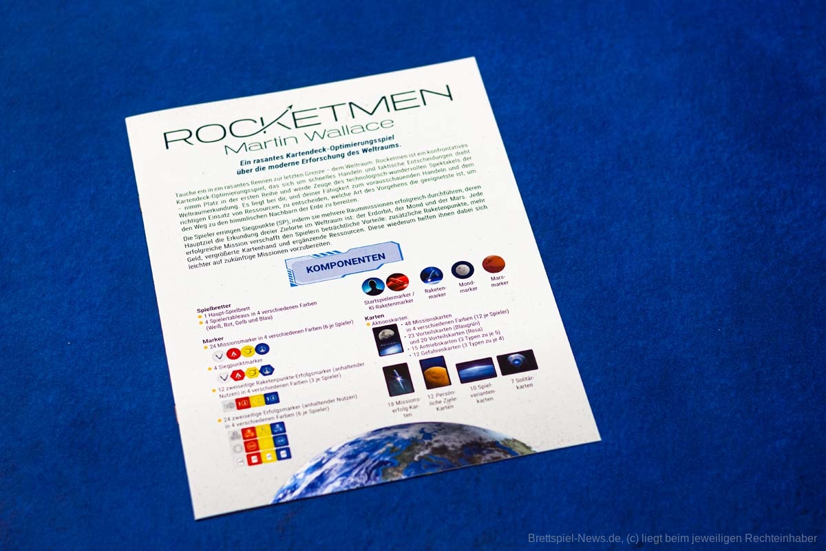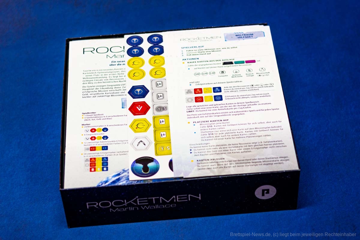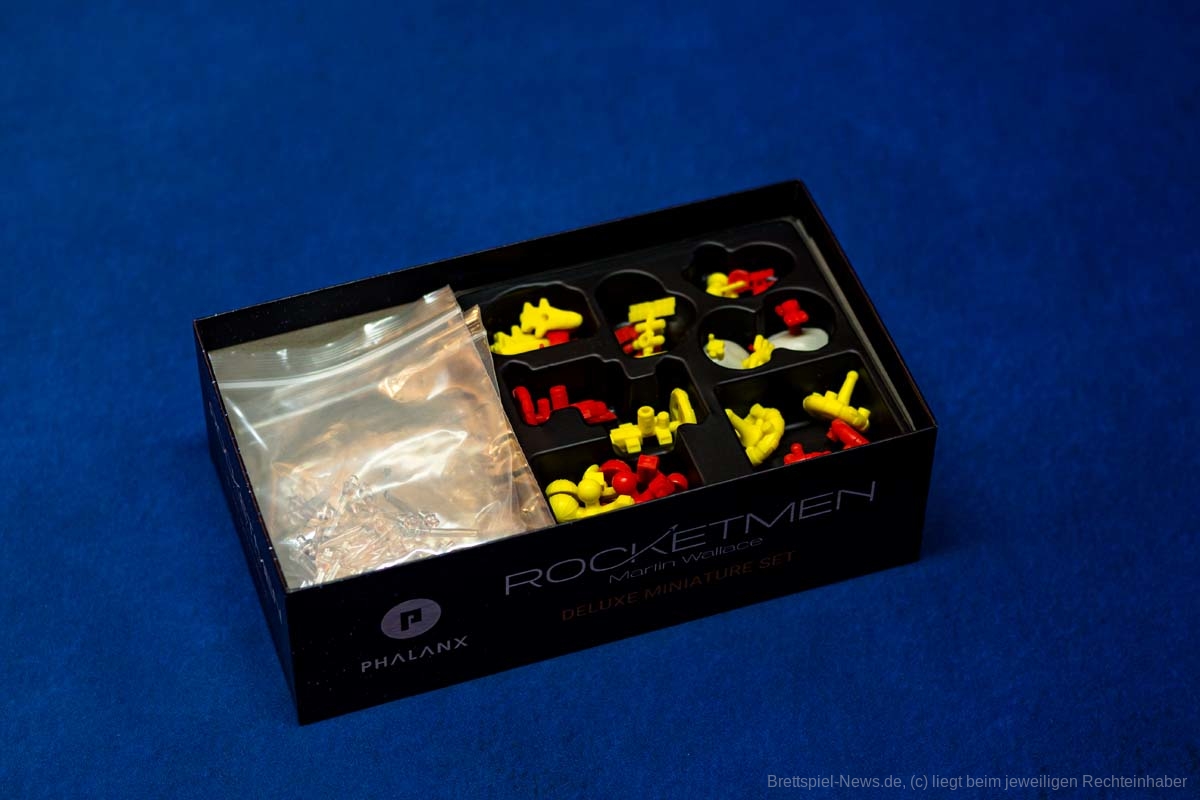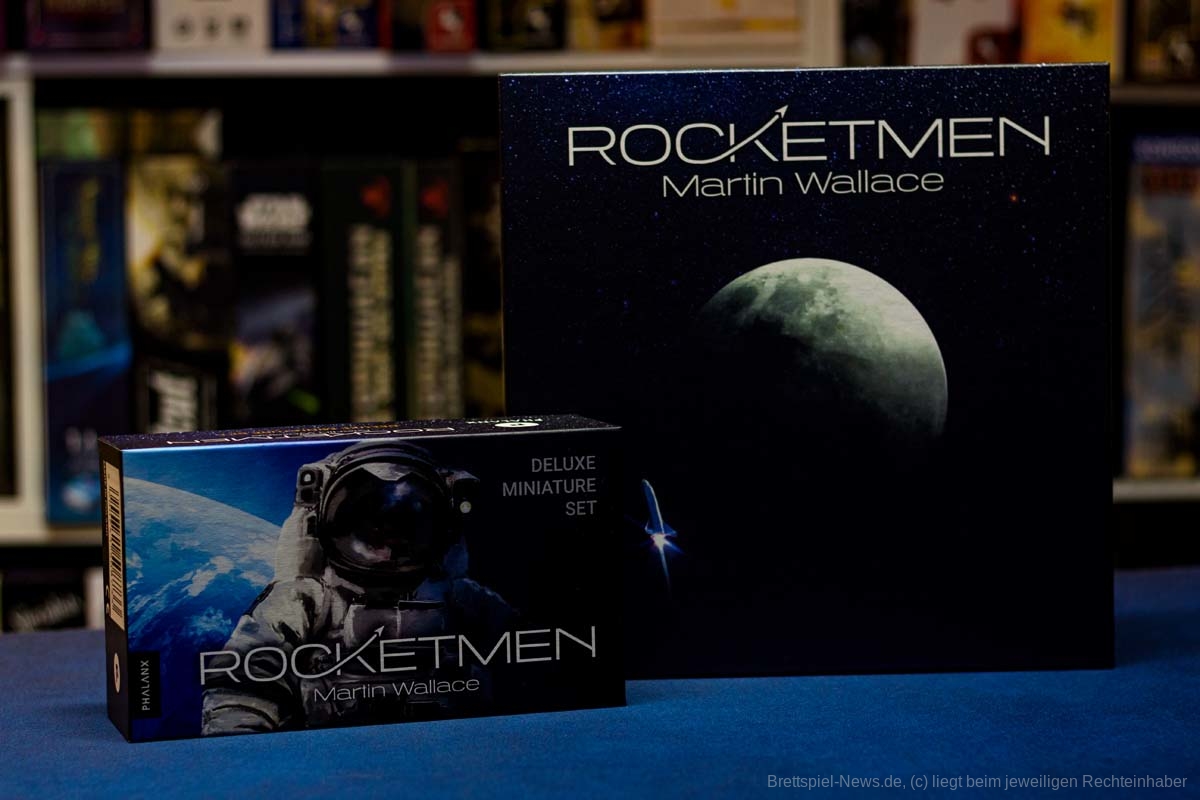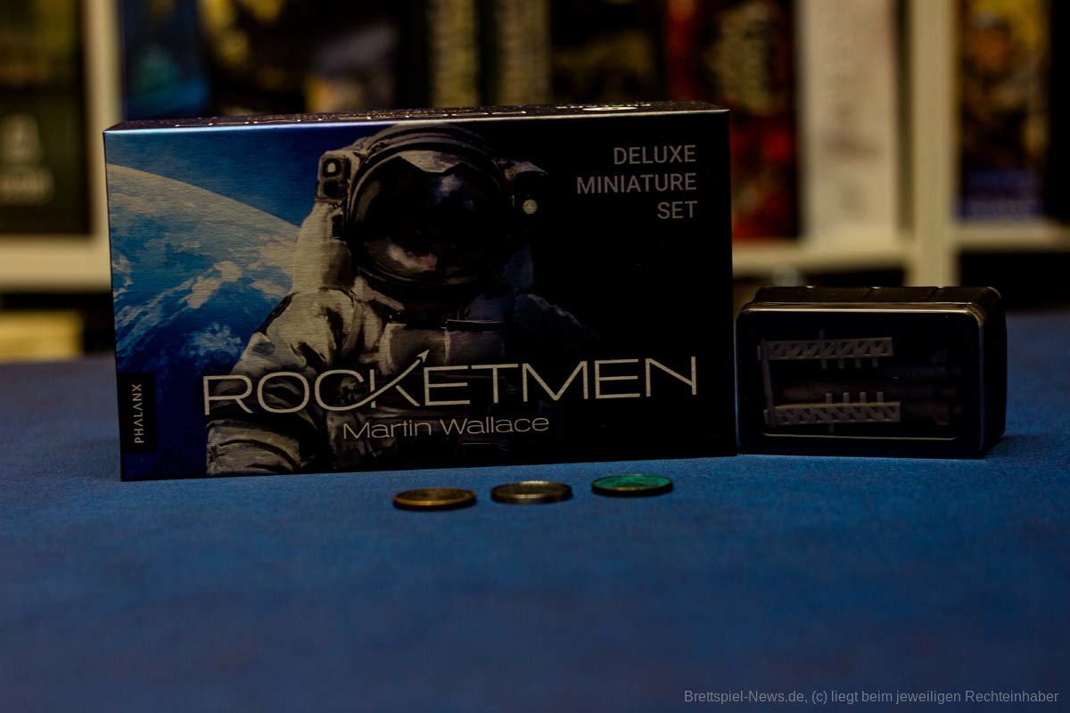Per Kickstarter-Kampagne wurde das neue Spiel von MARTIN WALLACE mit dem Titel ROCKETMEN erfolgreich finanziert. Es wurde auch eine deutsche Version produziert, die uns vorliegt. Das kartengesteuerte Science-Fiction-Spiel ist für 1-4 Spielende ausgelegt. Das Spiel lässt sich bereits im Handel für nur 31 € vorbestellen und zusätzlich gibt es ein separates Miniaturenset, dass als Vorbestellung aktuell 28 € kostet. Der UVP des Grundspiels liegt bei günstigen 35 €, wobei wenig Material in der großen Box enthalten ist.