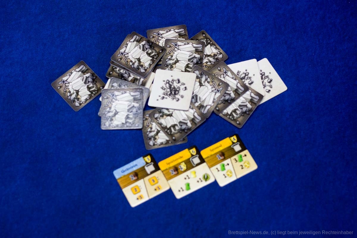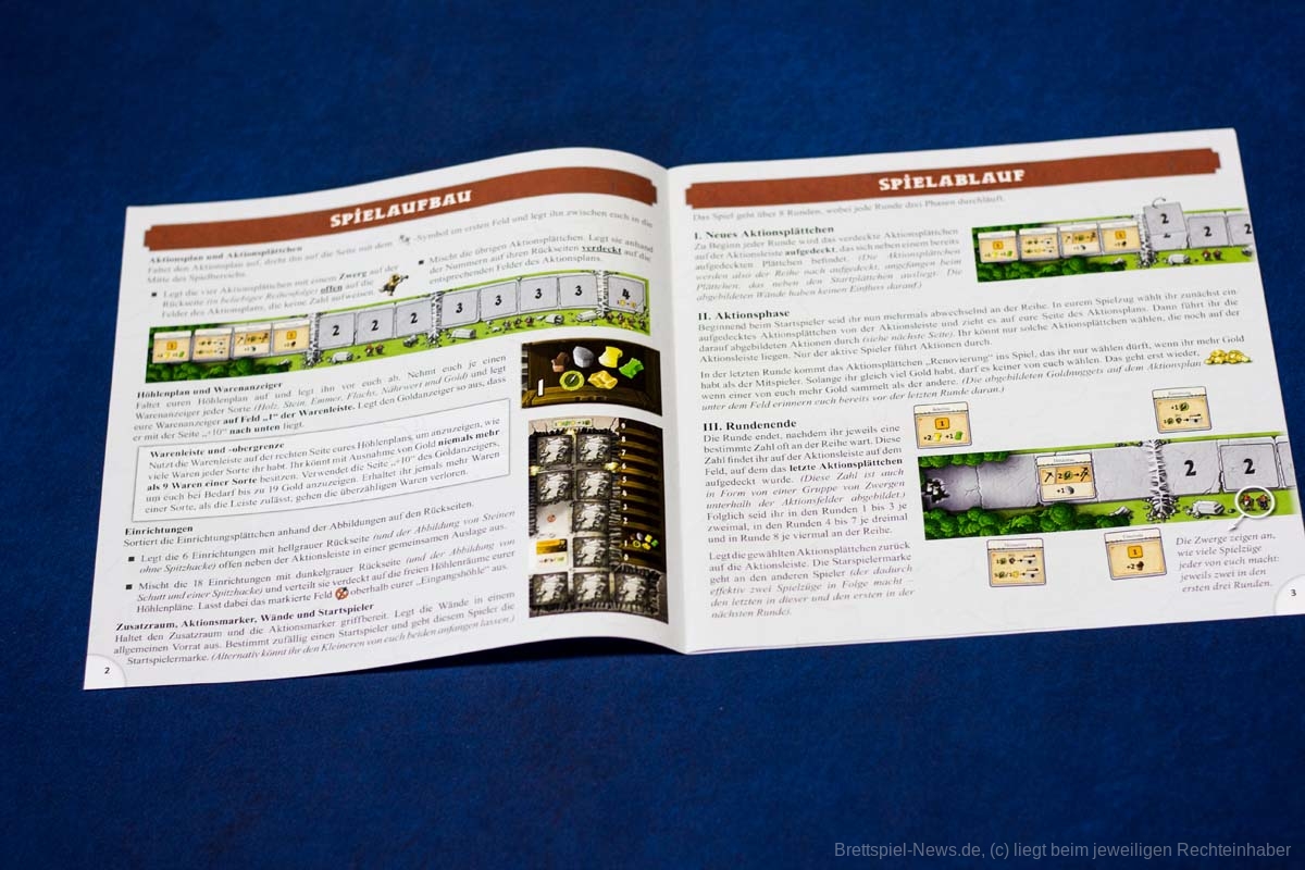 Jede Runde werden sich dabei die Aktionskarten streitig gemacht, die man dringend benötigt, um seine Stammhöhle weiter auszubauen. Es müssen neue Höhlen ausgehöhlt, Wände gebaut und Räume eingerichtet werden. Außerdem wären es keine Zwerge, wenn sie nicht auch nach allerlei Edelmetall schürfen und so ihren Reichtum wachsen lassen könnten. Der Stammesälteste, der nach ca. 45 Minuten den größten Reichtum angehäuft hat, gewinnt den Wettstreit der Zwerge!
