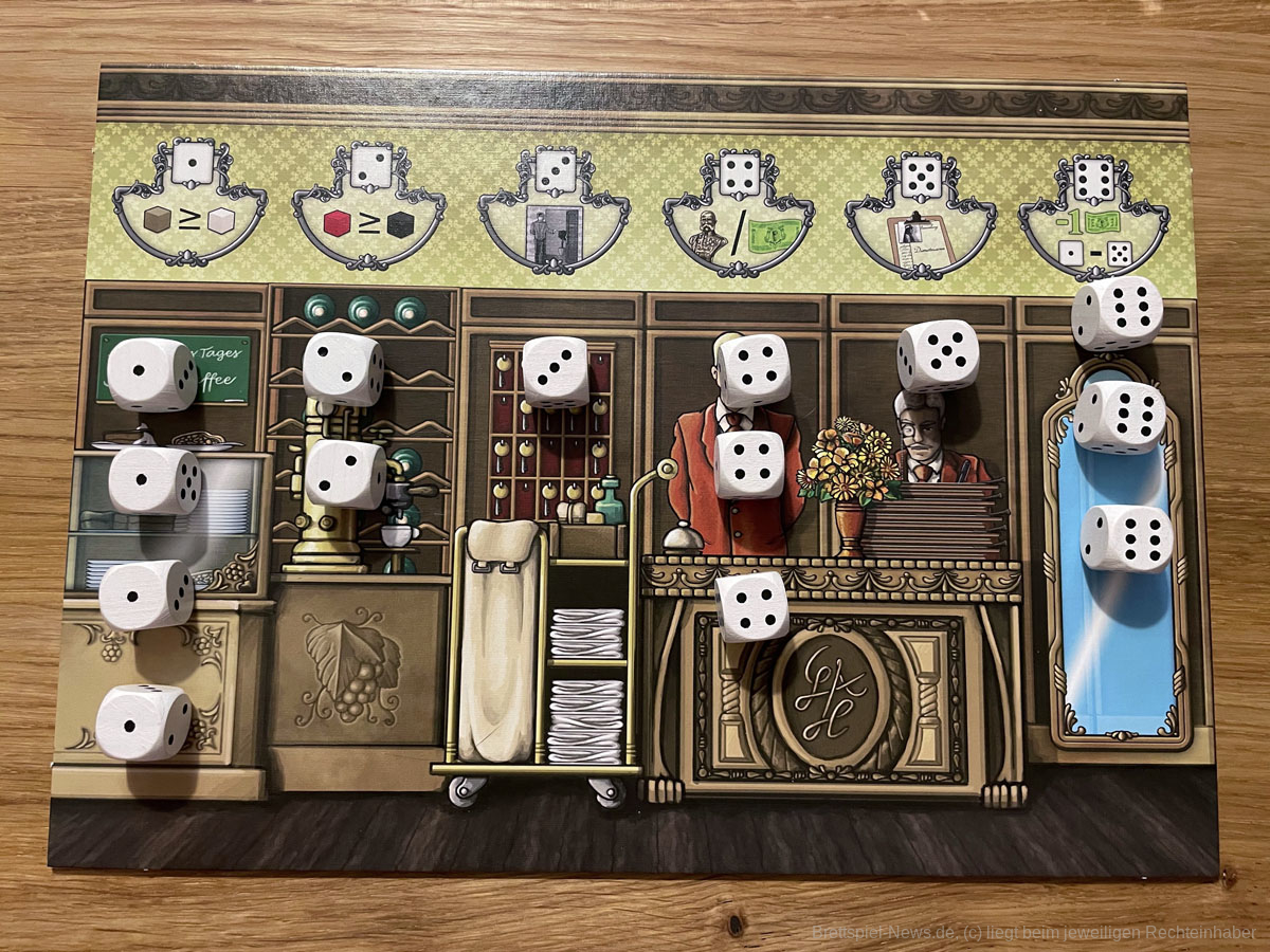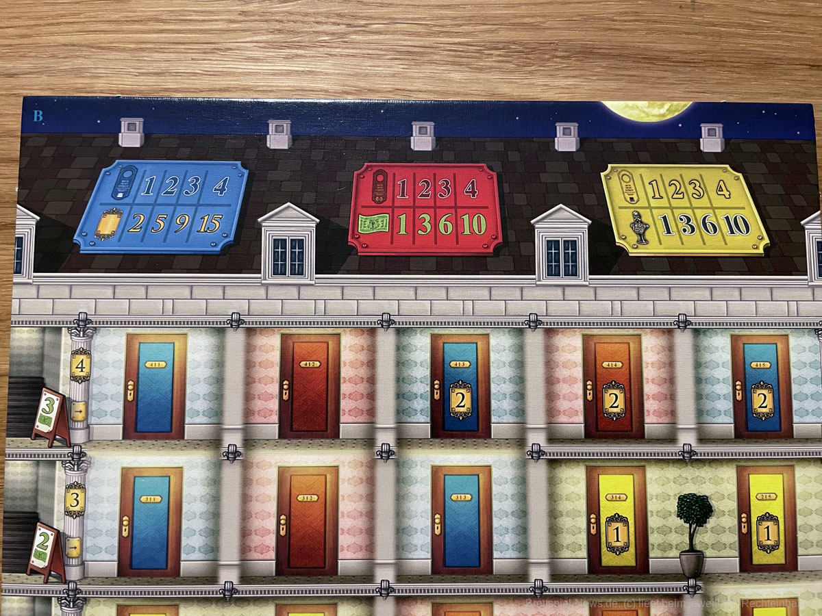 Doch ohne Gäste kann kein Hotel wachsen. Die kluge Auswahl der Gäste und die Erledigung ihrer Aufträge bringt einige wichtige Bonusaktionen. Auch die Personalkarten haben verschiedene Vorteile, aber das Spiel endet nach sieben Runden und kein Spieler kann alles machen, was er will. Wer also die richtigen Entscheidungen trifft und den besten Weg findet, Bonusaktionen zu schaffen, gewinnt.