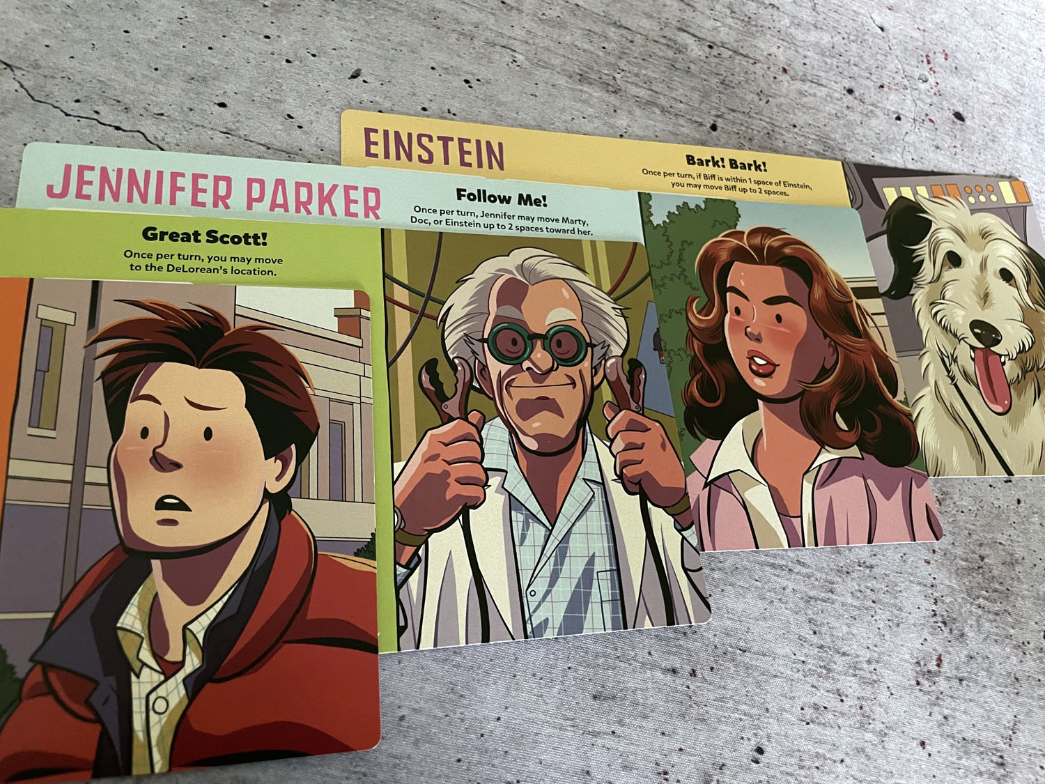 In dem vollständig kooperativen Spiel Zurück in die Zukunft: Back in Time schlüpft jeder Spieler in die Rolle einer Hauptfigur aus dem Film: Marty McFly, Doc Brown, Jennifer Parker oder Einstein, der Hund. Ziel des Spiels ist es, dass sich die Figuren in Hill Valley von 1955 bewegen und bestimmte Gegenstände sammeln, um Docs berühmte DeLoreon-Zeitmaschine zu reparieren, Biff Tannen und seine Bande von Freunden, die Ärger machen, zu besiegen und gleichzeitig dafür zu sorgen, dass sich Martys Eltern verlieben. Erst wenn das geschafft ist, können die Spieler das DeLoreon auf 88 MPH auf der Main Street beschleunigen, bevor der Uhrenturm 22:04 Uhr schlägt!