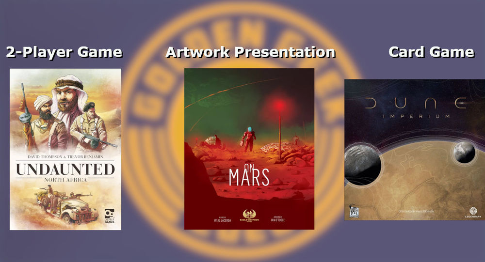 Als bestes 2-Spieler:innen Spiel (2-Player Game) wurde UNDAUNTED: NORTH AFRICA von Trevor Benjamin und David Thompson prämiert. Erschienen ist das Wargame mit Deck Building Mechanismus bei OSPREY GAMES. Auf den Plätzen zwei und drei landeten das asymmetrische Miniaturenkampf Spiel UNMATCHED: COBBLE & FOG und das Wargame IMPERIAL STRUGGLE.