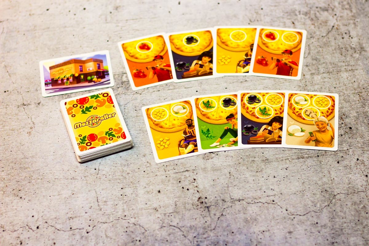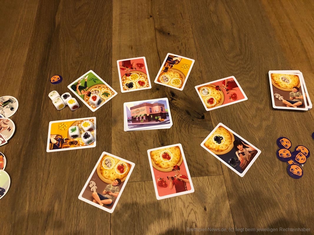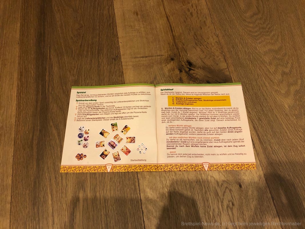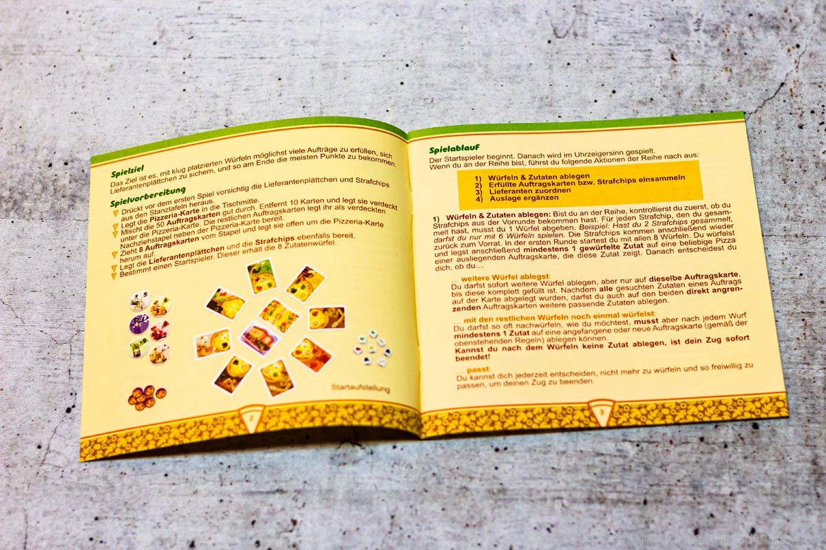 Wenn die Pizza geliefert wird, sind die Kinder begeistert und die Eltern brauchen an den Feiertagen nicht in der Küche stehen. Mehr Zeit für alle, sich dem kurzweiligen Familienspiel rund um die neu eröffnete Pizzeria „Angelo" zu widmen, die sich vor Aufträgen nicht retten kann. Ehe die Lieferanten auf ihren Rollern durch die Stadt düsen, müssen die Pizzen aber noch mit den richtigen Toppings belegt werden. Mit ein bisschen Taktik und einer Portion Würfelglück etablieren sich die Spieler bei dem einen oder anderen Stammkunden als Lieblings-Pizzalieferant. Doch die Konkurrenz schläft nicht...