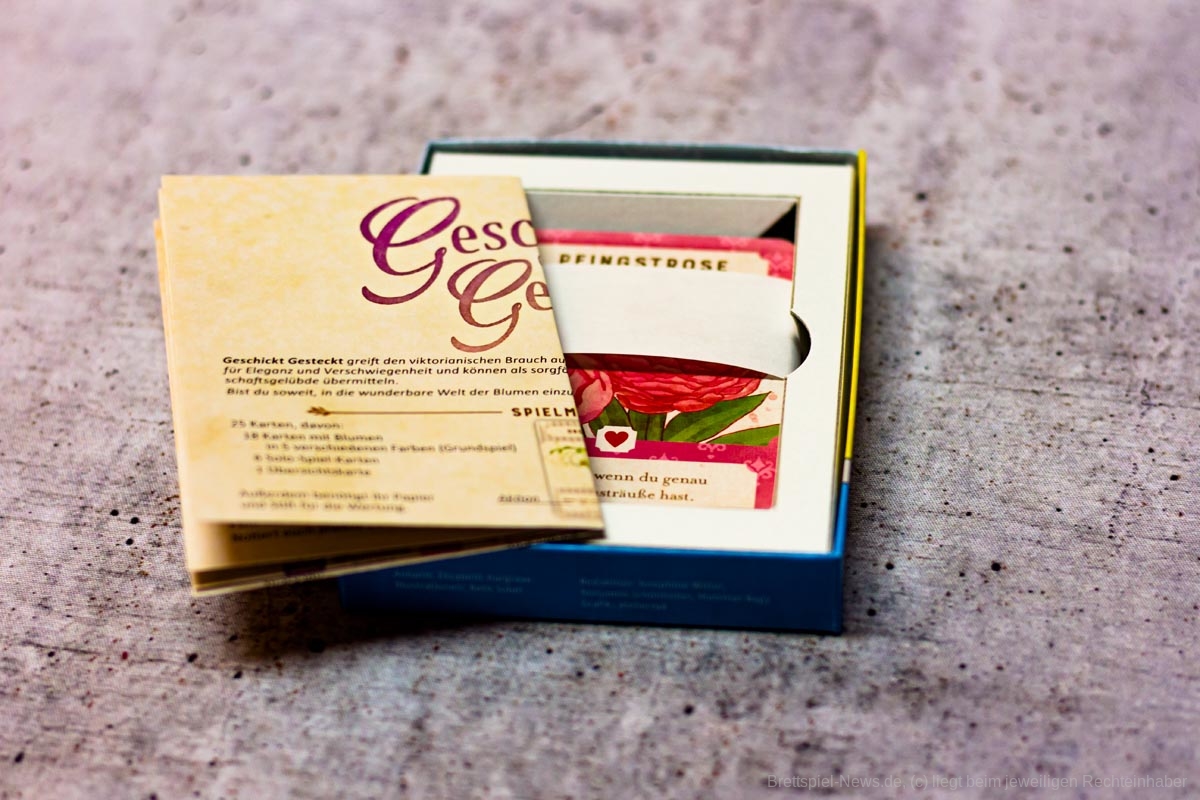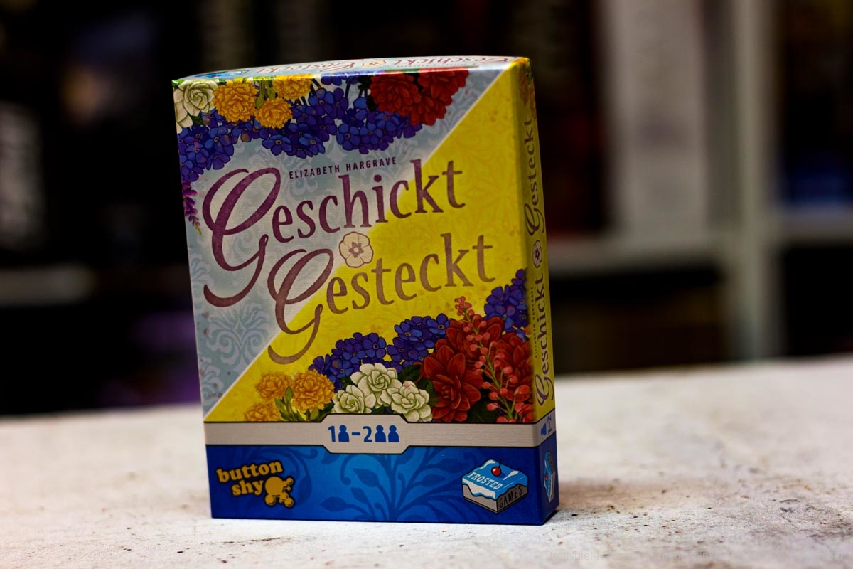 Frosted Games hat 2021 eine Reihe von Mini-Spielen, die sogenannten Button-Shy Spiele, veröffentlicht. Unter anderem auch das Kartenspiel GESCHICKT GESTECKT, das als floristisches Kartenspiel daherkommt und somit ein sehr ungewöhnliches Setting bietet. 1-2 Spielende können sich rund 20-30 Minuten mit dem Spiel beschäftigen.