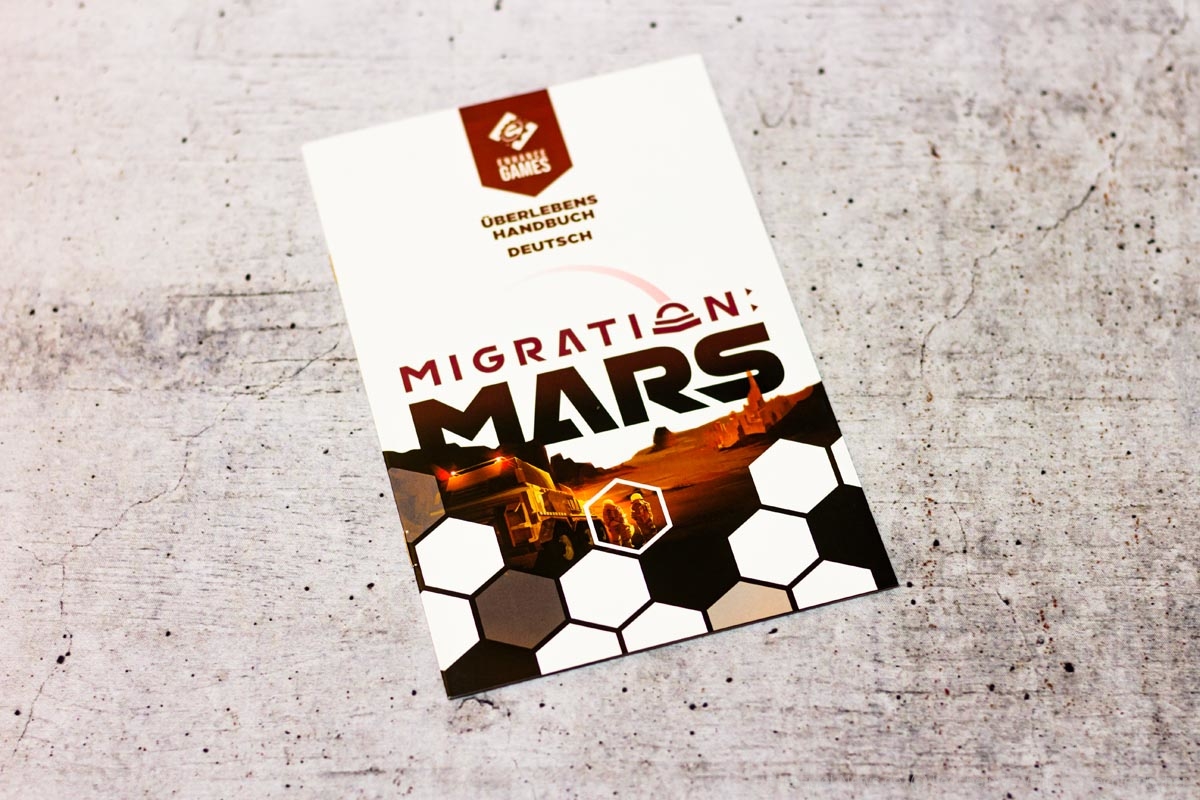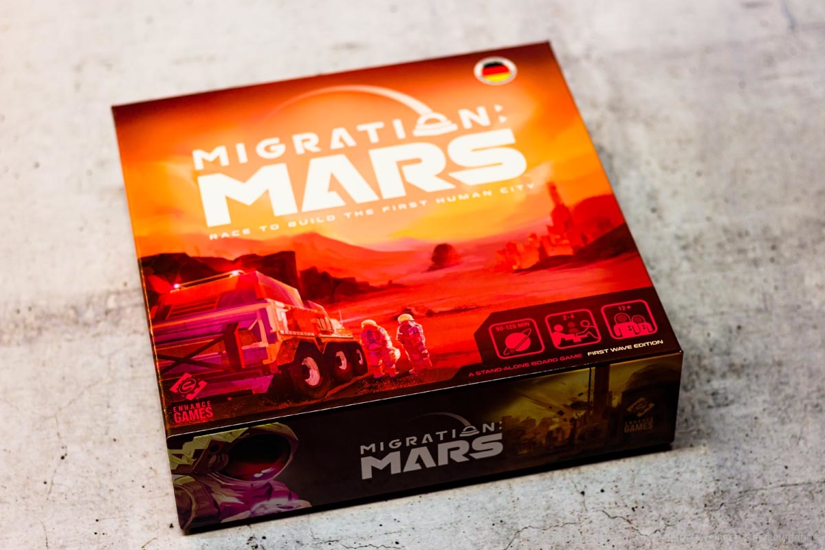 Im Januar 2020 wurde MIGRATION MARS auf Kickstarter erfolgreich finanziert. Fast 3.000 Unterstützende sorgten für einen Umsatz von 130.000 US$. Nun wurde das Spiel auch an deutschsprachige Unterstützende ausgeliefert und beinhaltet tatsächlich eine deutsche Anleitung. Ziel des Spiels ist es eine erfolgreiche Kolonie auf dem Mars zu errichten.