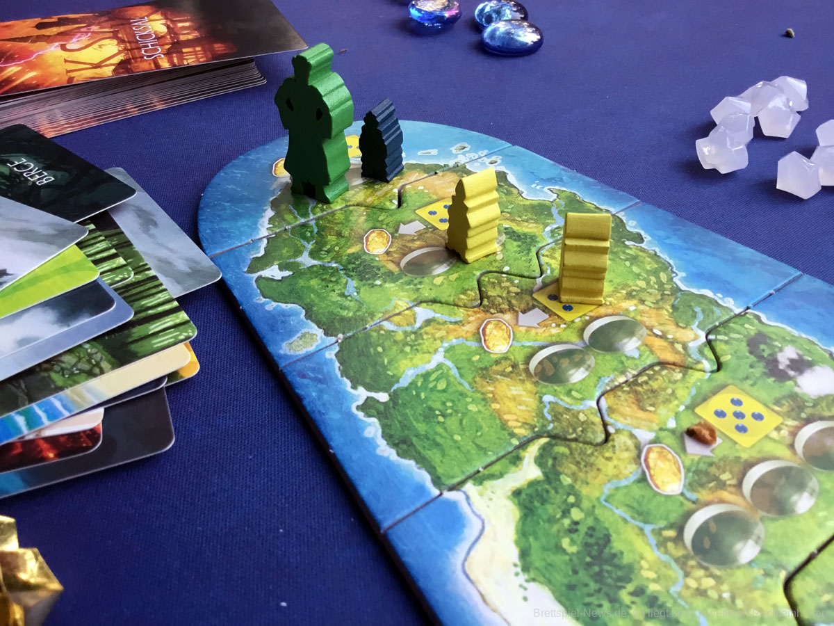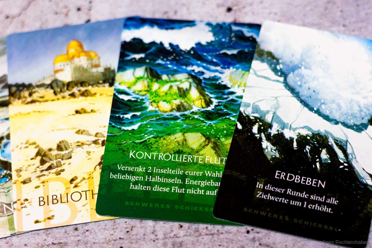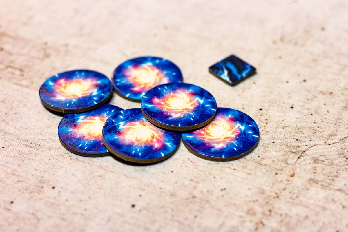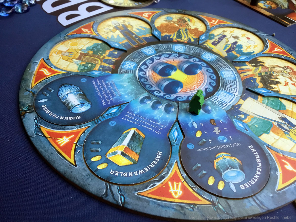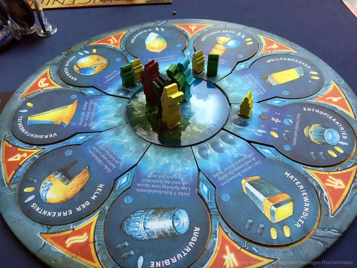 Unterstützt werdet ihr bei eurer Aufgabe von den Anführern der verschiedenen Stämme auf Atlantis, von denen jeder eine Spezialfähigkeit besitzt. Zusätzlich bieten die Bestandteile des Kosmischen Tors, sobald sie einmal errichtet sind, neue Workerplacement-Plätze, an die ihr eure Arbeiter entsenden könnt, um Aktionen zur Rettung der Insel zu nutzen.
