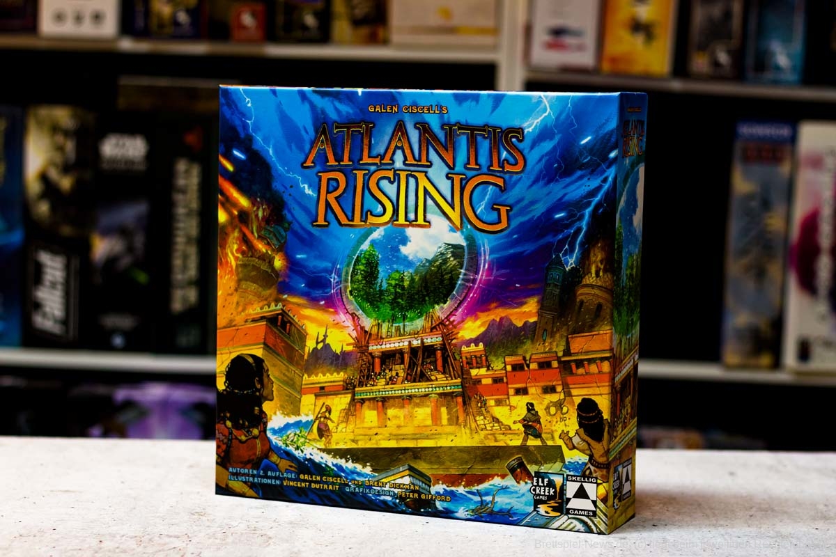Wie SKELLIG GAMES in der vergangenen Woche mitteilte, ist die deutsche Version von ATTLANTIS RISING (ZWEITE EDITION) ab jetzt im Handel erhältlich. In dem kooperativen Workerplacement-Spiel versuchen 1-7 Spieler:innen ein kosmisches Tor zu errichten, um von der sinkenden Insel Atlantis zu flüchten. Die Autoren des Spiels sind Galen Ciscell und Brent Dickman, das wunderschöne Artwork kommt von Vincent Dutrait (ROBINSON CRUSOE, JAIPUR, WETTLAUF NACH EL DORADO). Die Spielzeit beträgt etwa 60-120 Minuten.