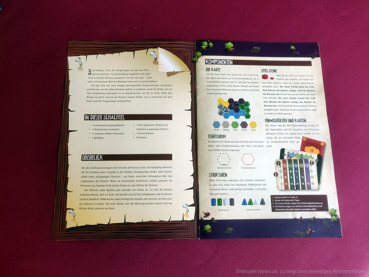 Jeder Spieler erhält genau einen Hinweis, der ihm helfen soll, die gesuchte Kreatur zu finden. Mit dieser Information als Tauschware musst du versuchen weitere Hinweise von deinen Mitspielern zu erhalten. Aber Vorsicht! Wenn du zu viel verrätst, werden dich deine Gegner im Wettlauf um die Entdeckung des mysteriösen Tieres schlagen und allen Ruhm für sich beanspruchen!