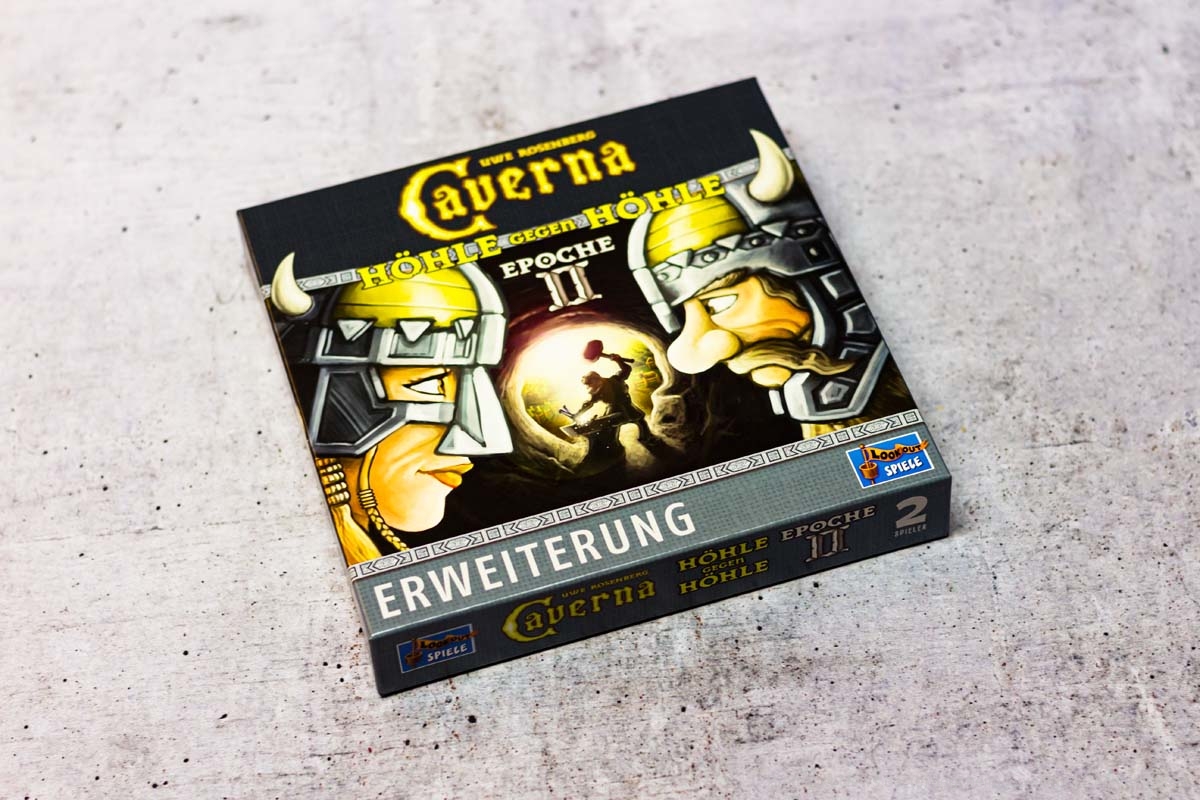 Bereits 2018 ist die Erweiterung CAVERNA: HÖHLE GEGEN HÖHLE – EPOCHE II erschienen. Sie stammt, wie das Grundspiel, vom Erfolgsautoren UWE ROSENBERG und richtet sich an Vielspieler. Die Spielzeit wird mit 30-60 Minuten angegeben. Unseren Test zum Grundspiel findest du übrigens hier.