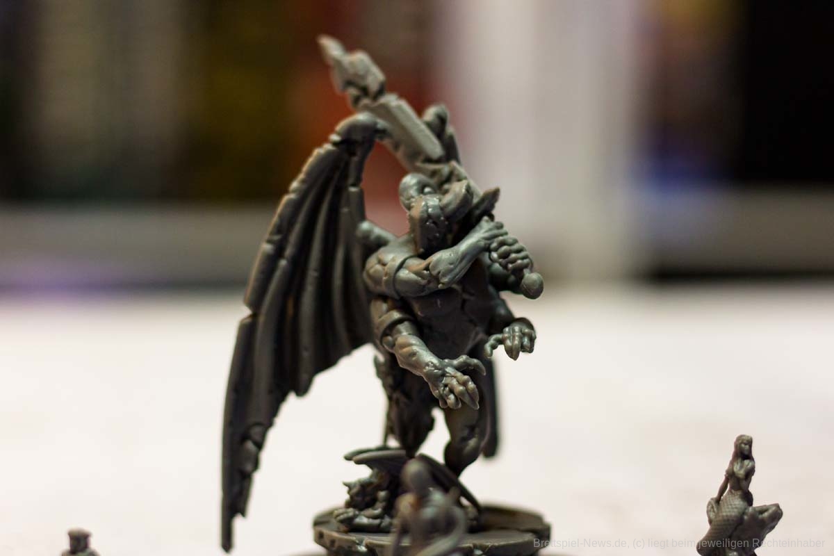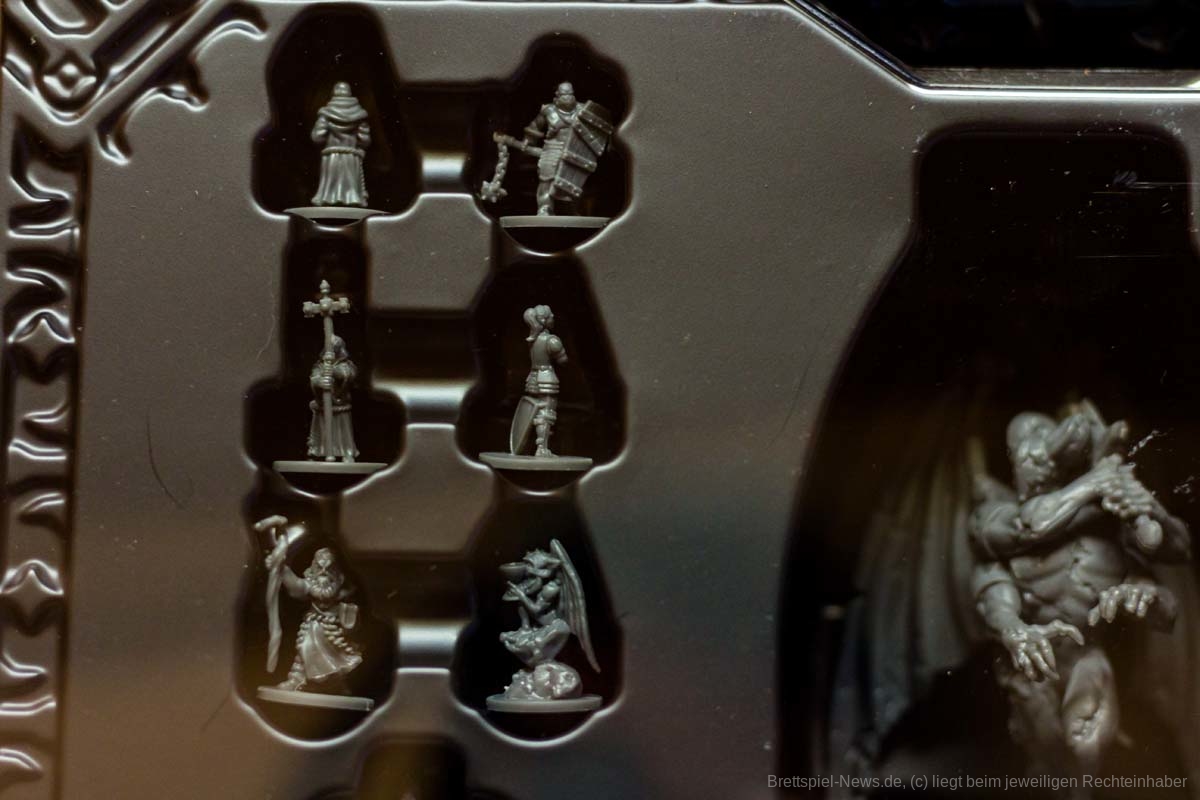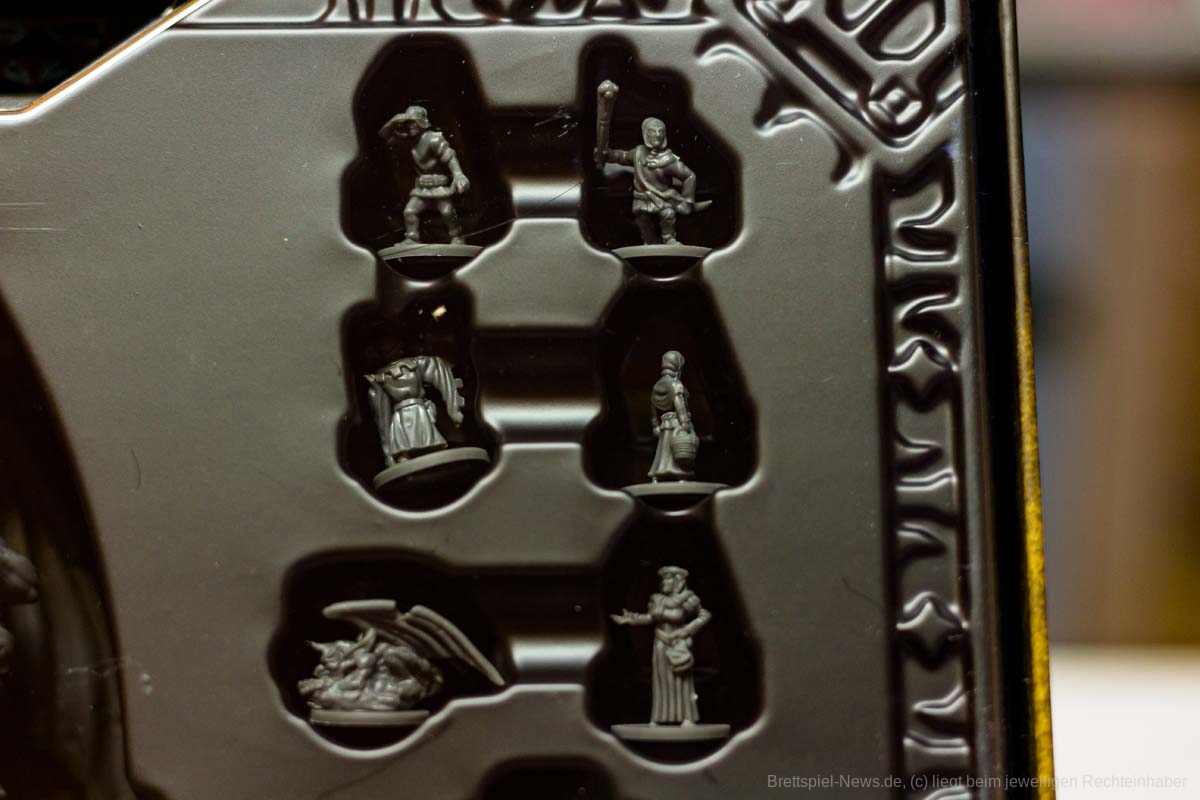 Die Erweiterung Mythen & Legenden fügt drei neue Szenarien, 12 kleine Minis, 2 mittelgroße Minis und 1 große Gargoyle-Mini sowie eine Menge neuer Kartenplättchen, Schicksalskarten und Gegenstandskarten hinzu.