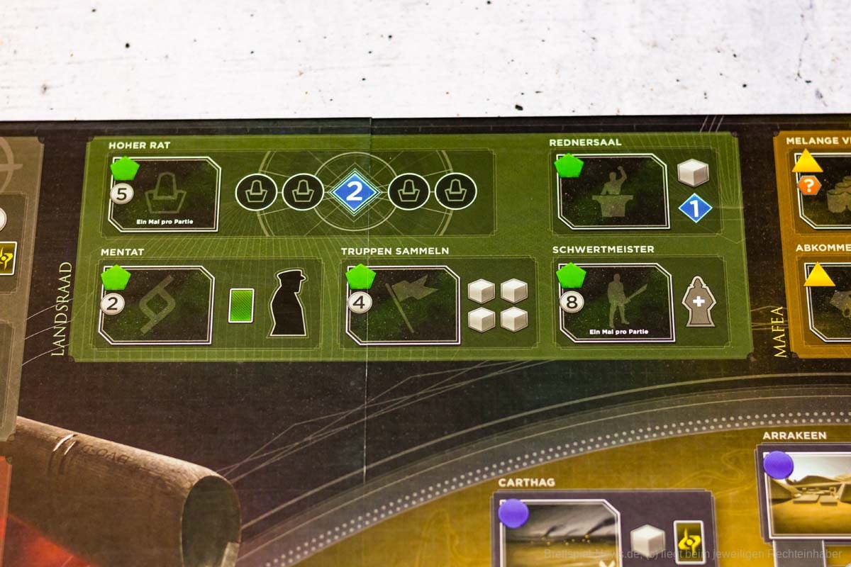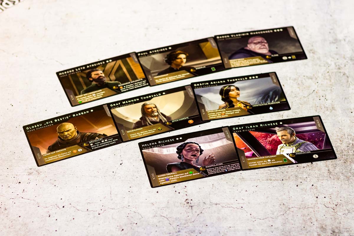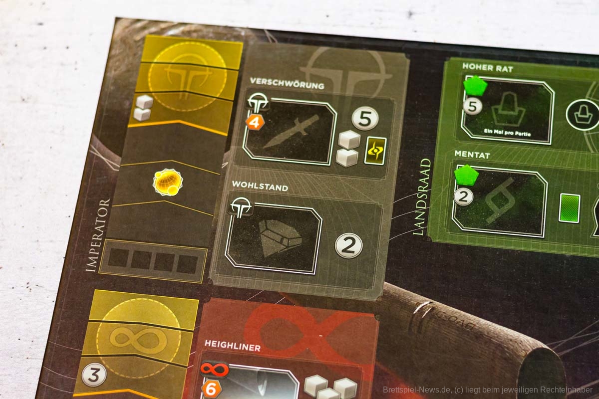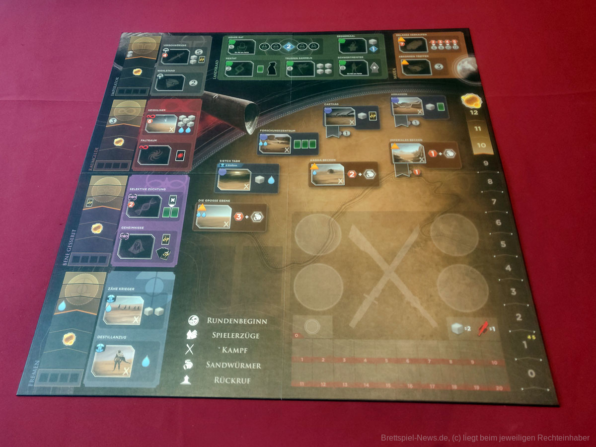 Hisst euer Banner über der weiten Einöde vor euch. Die großen Häuser des Landsraad lassen ihre Streitkräfte aufmarschieren und setzen ihre Spione ein. Mit wem wollt ihr euch verbünden, wen wollt ihr verraten? Vor euch stehen ein tyrannischer Kaiser, die verschwiegenen Bene Gesserit, die gewiefte Raumfahrergilde und die wilden Fremen der tiefen Wüste. Die Macht des Imperiums kann euch gehören, doch Krieg ist dabei nicht der einzige Weg, um sie zu beanspruchen.