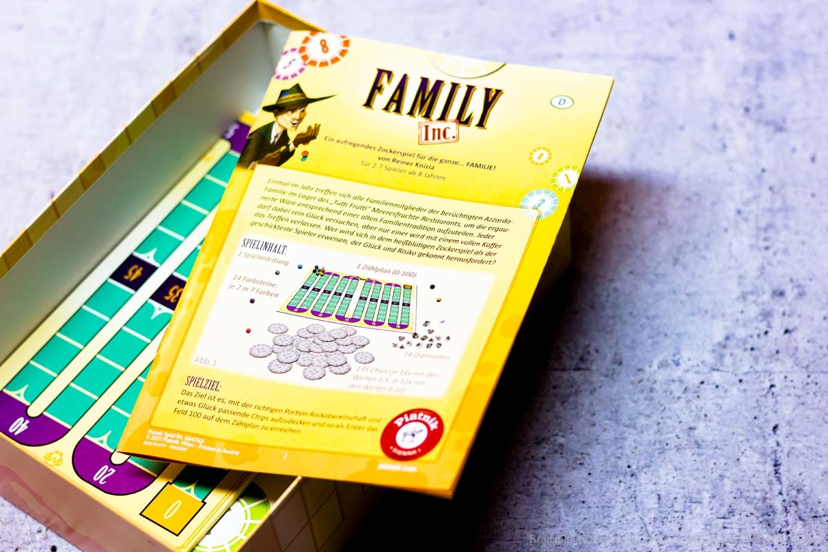 Das Familienspiel FAMILY INC. ist bei PIATNIK erschienen. Durch die Spieleranzahl von bis zu sieben Spielenden eignet es sich auch für größere Familien mit Kindern ab acht Jahren. Die Spielzeit ist mit gerade einmal 15 Minuten angegeben, der Preis liegt bei rund 19 €.