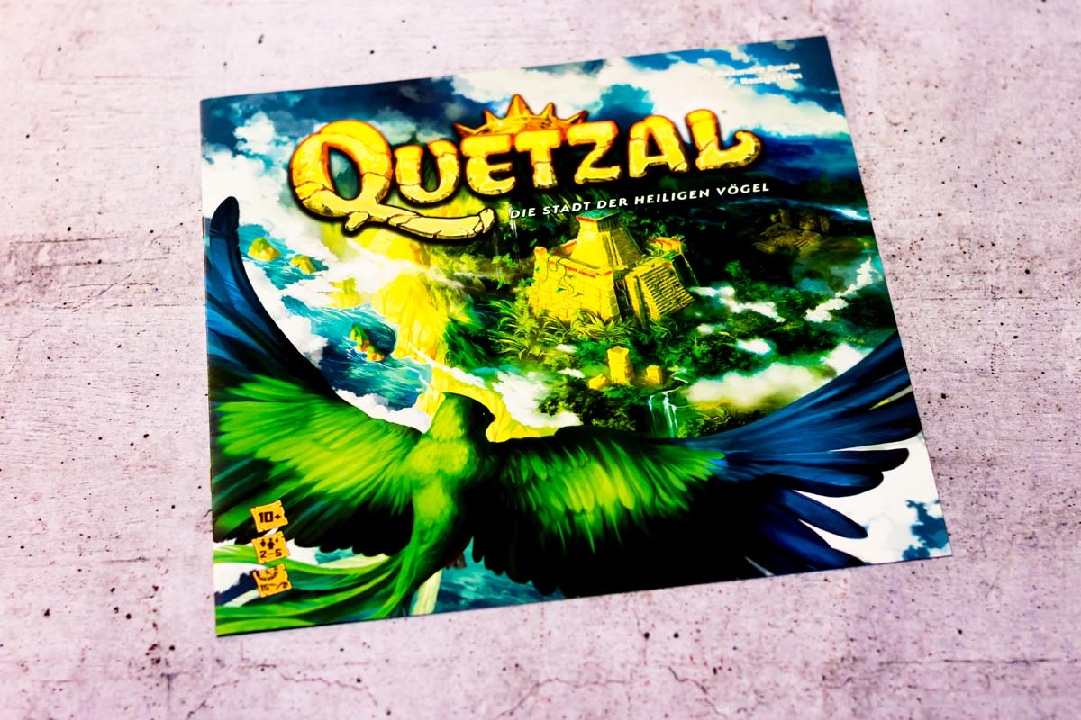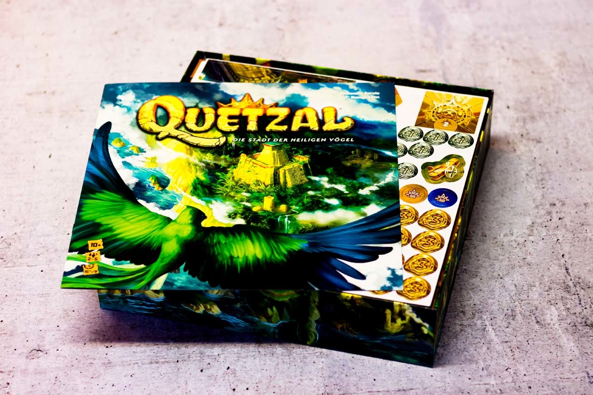Im Spiel schlüpfen die Spieler in die Rolle von Leitern einer Insel-Expedition, um die erst kürzlich entdeckte Stadt Quetzal und mit ihr die uralten Ruinen eines vergessenen Tempels zu erkunden. Auf der Suche nach wertvollen Artefakten entsendet jeder von euch eine Gruppe von Abenteurern und Archäologen. Es gilt, die beste Kollektion an Artefakten aufzubauen und sie zum richtigen Zeitpunkt am Hafen abzuliefern, um Siegpunkte zu sammeln. Quetzal ist mit 15 Minuten Spieldauer ein schnelles, aber laut Verlag durchaus anspruchsvolles Strategiespiel, das sich für zwei bis fünf Spieler eignet.