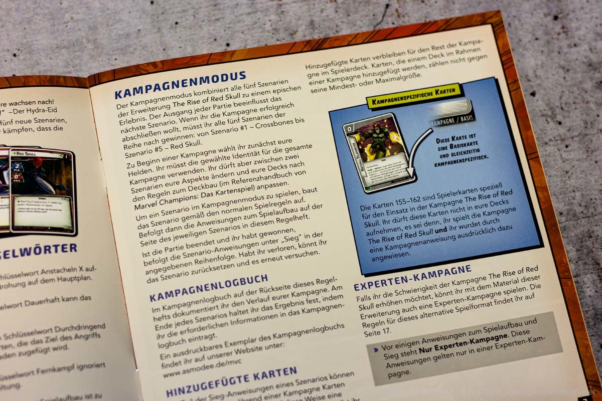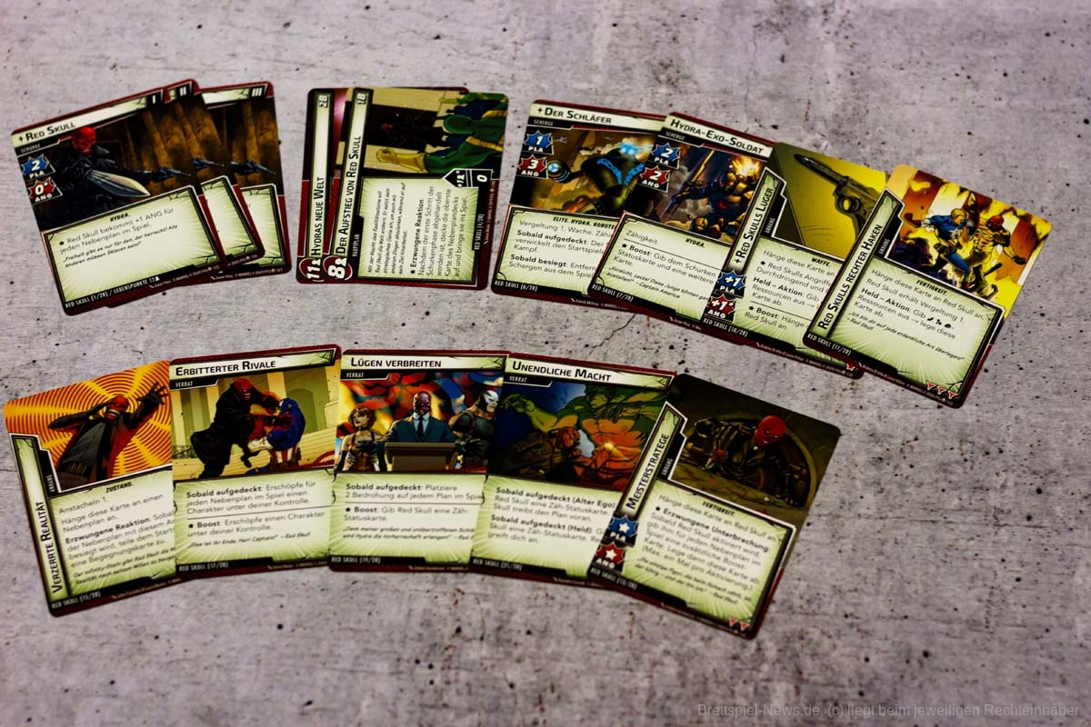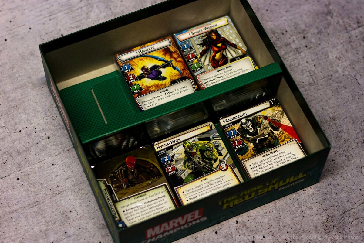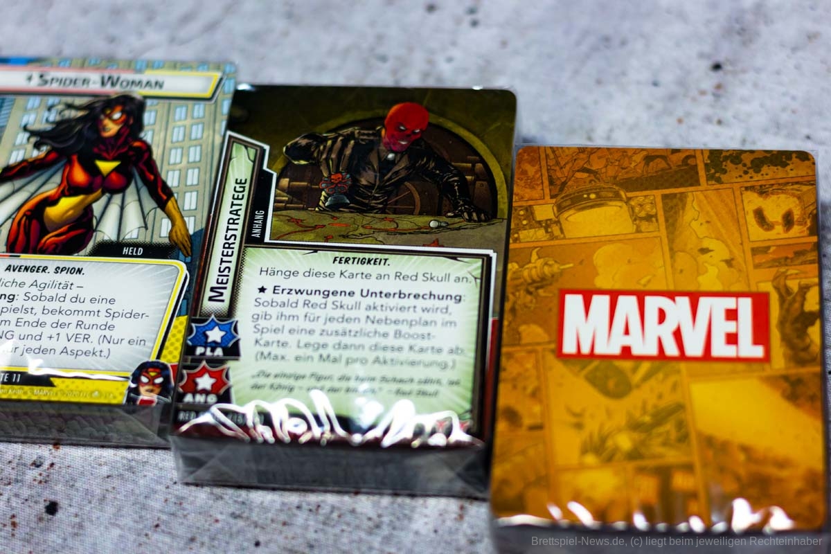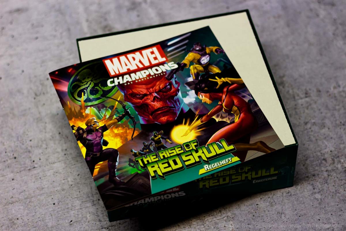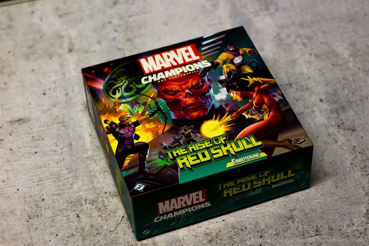 Mit THE RISE OF RED SKULL ist die erste Kampagnen Erweiterung für MARVEL CHAMPIONS veröffentlicht worden. Diese enthält fünf Szenarien die laut Verlag jeweils einzigartige Herausforderungen liefern sollen. In der Box sind als Avengers HAWKEYE und SPIDER WOMAN enthalten. Als Gegner erwarten uns Crossbones, Absorbing Man, Taskmaster, Zola und Red Skull. Der Preis im Handel liegt bei ca. 40 €.
