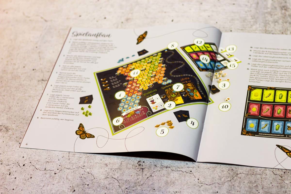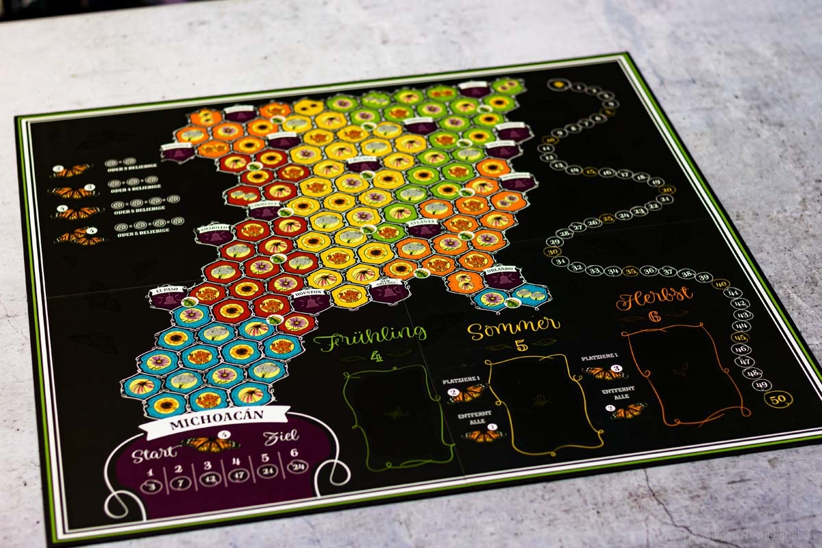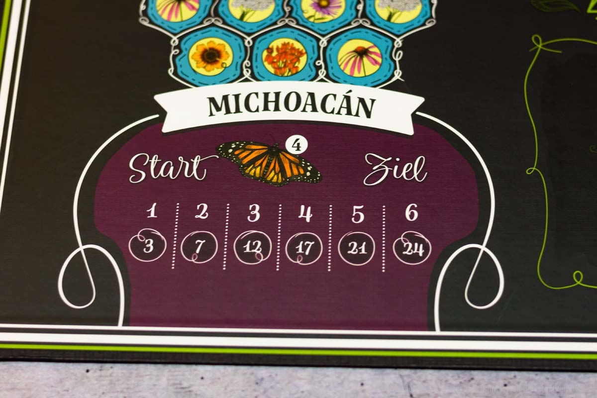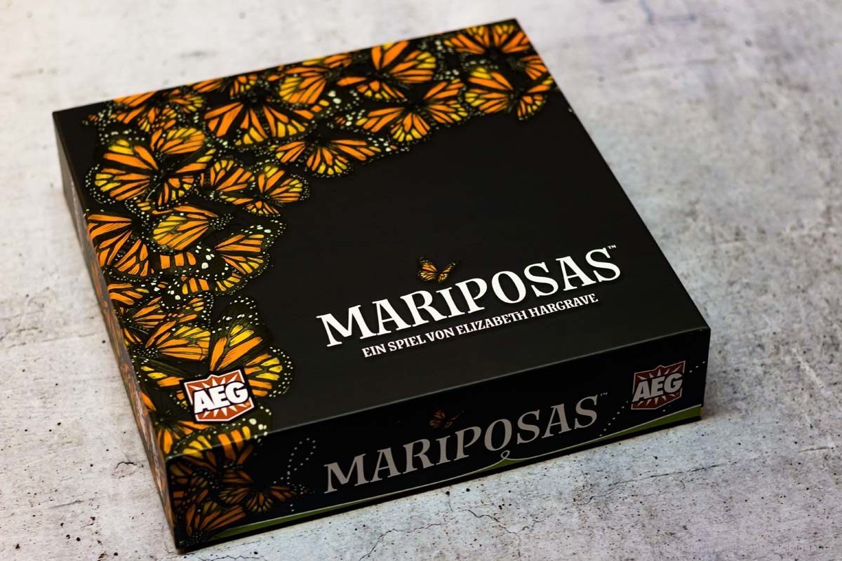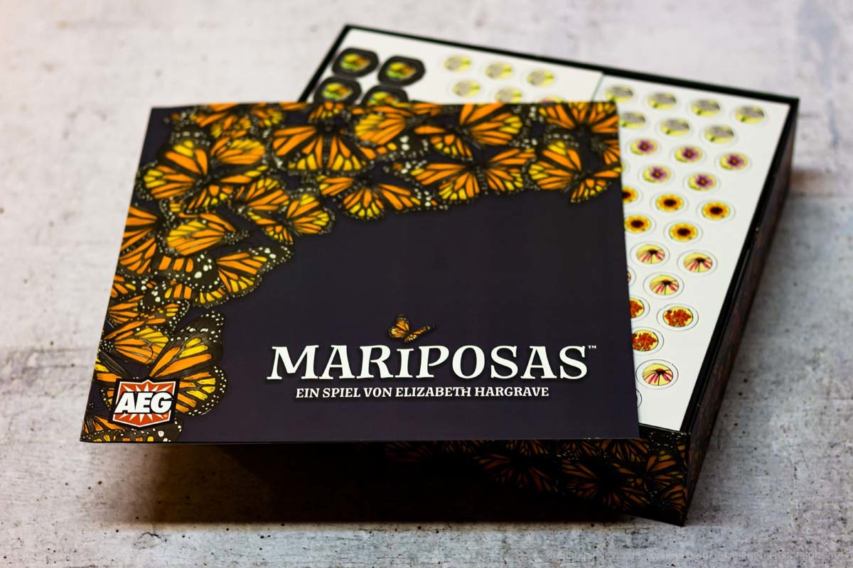 MARIPOSAS ist ein weiteres naturverbundenes Spiel von ELIZABETH HARGRAVE (FLÜGELSCHLAG). Anfang des Jahres war die deutsche Version erschienen und nun haben wir ein Exemplar organisiert und zeigen Bilder des Spielmaterials. Für ca. 45 € ist das Spiel im Handel erhältlich. Es richtet sich an 2-5 Spielende und bietet eine Spielzeit von ca. 45 Minuten.