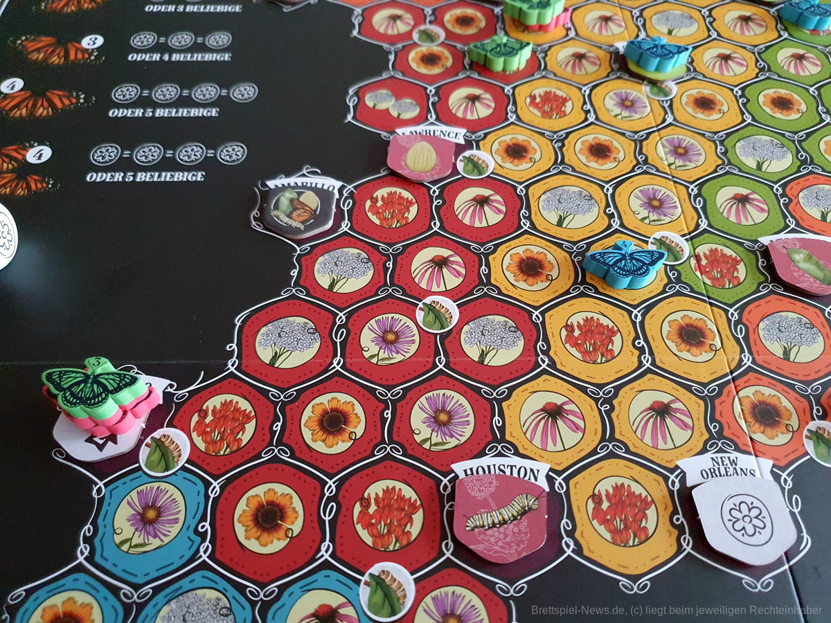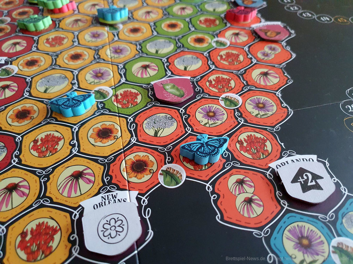 Es wird in drei Jahreszeiten gespielt. Generell versuchen Deine Schmetterlinge, im Frühjahr nach Norden zu ziehen, sich im Sommer auszubreiten und im Herbst nach Süden zurückzukehren. Das Ende jeder Jahreszeit bringt eine Wertungsrunde, und am Ende des Herbstes gewinnt der Spielende mit der erfolgreichsten Schmetterlingsfamilie, den meisten Siegpunkten, das Spiel.