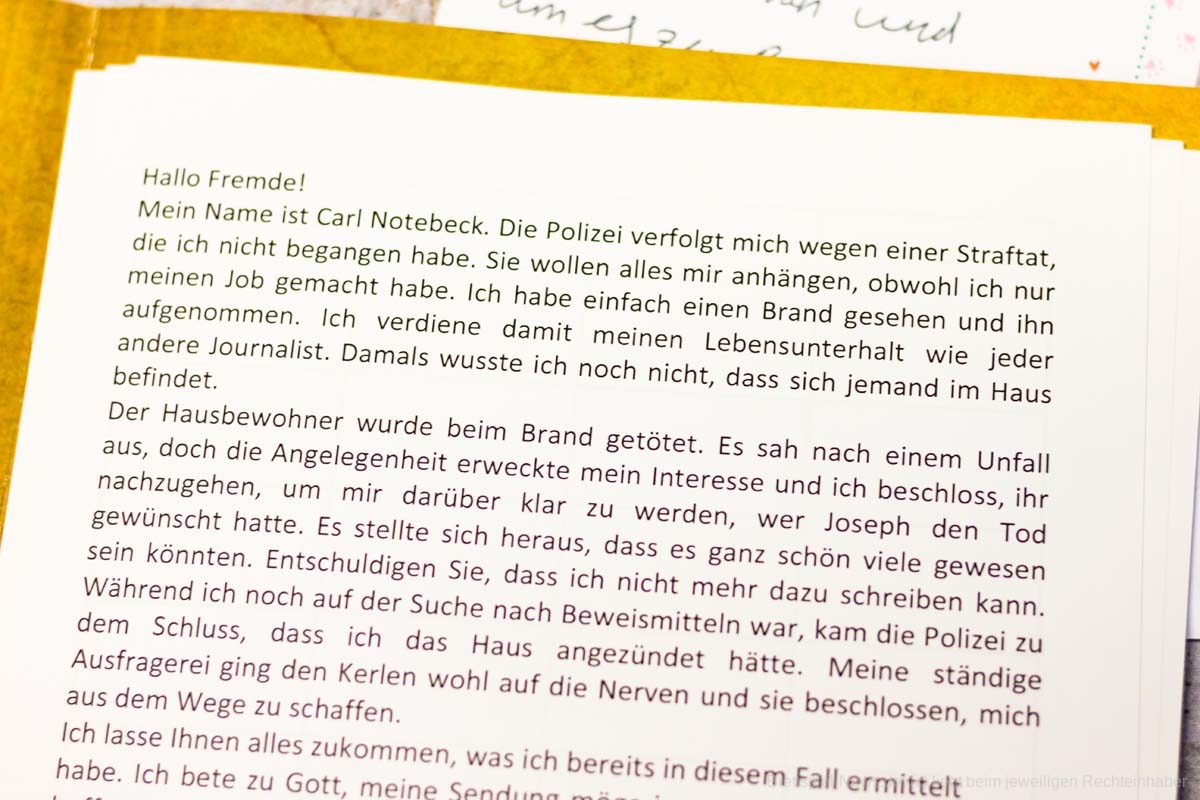 Wegen Brandstiftung mit fatalen Folgen wird ein Journalist angeklagt. Er sammelte zahlreiche Beweise mit dem Ziel, seine Unschuld zu beweisen. Ihr müsst ermitteln, ob er die Wahrheit sagt oder ob eine andere Person für das Verbrechen verantwortlich ist.