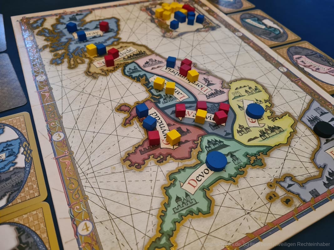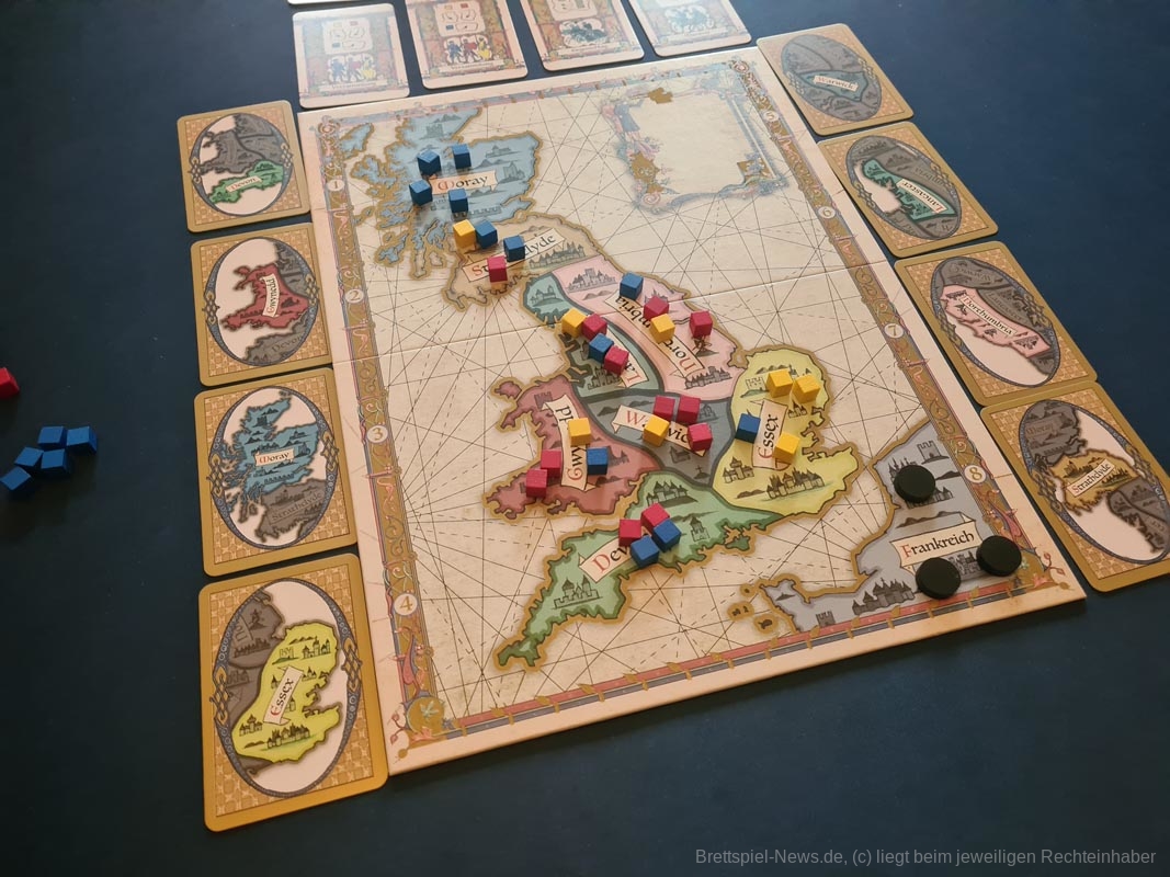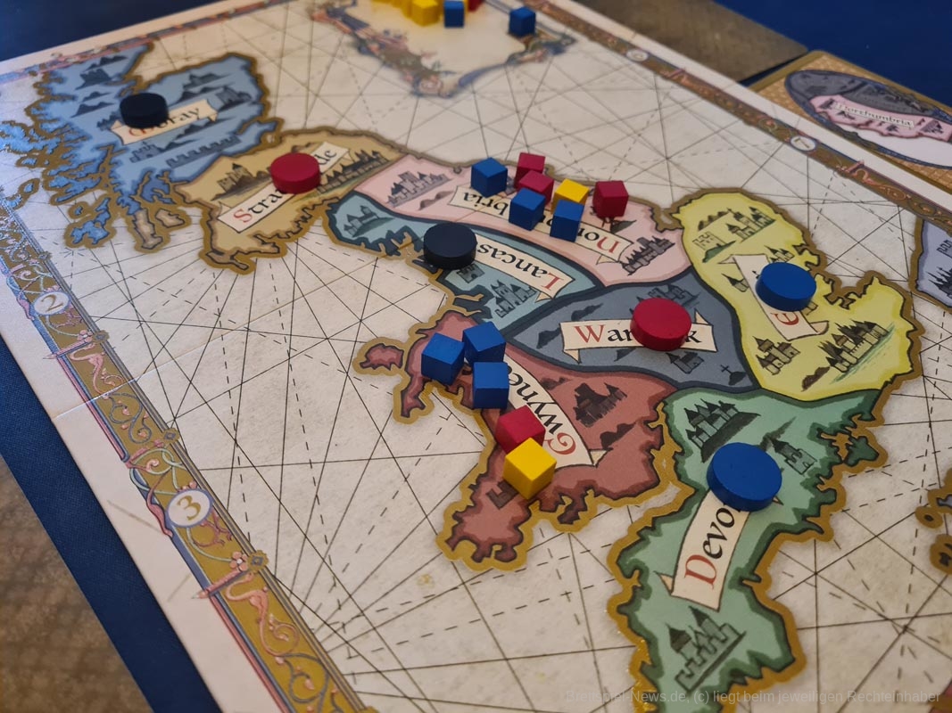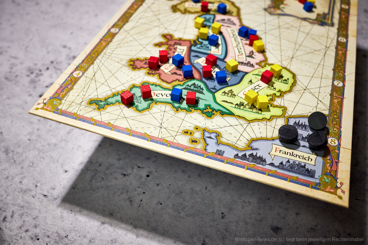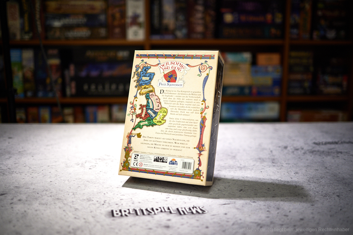 DER KÖNIG IST TOT ist ein taktisches Mehrheitenspiel von Peer Sylvester für 2 bis 4 Spielende ab 14 Jahren, die sich als intrigante Adligen den Weg zum Thron ebnen wollen, indem sie auf der Insel Großbritanniens die Strippen ziehen.