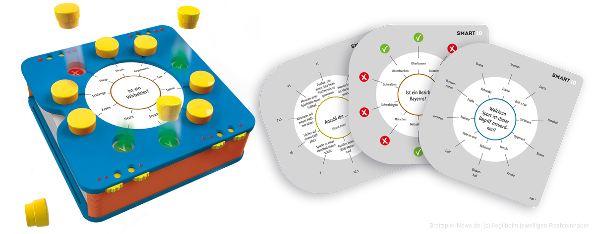 Der Piatnik Verlag hat mit SMART 10 FAMILY eine familiengerechte Variante des Hauptspiels herausgebracht. In dem Quizspiel, das nun auch von Kinder ab 8 Jahren mitgespielt werden kann, versuchen 2 - 8 Spielende in 20 Minuten die meisten Fragen korrekt zu beantworten. Der UVP beträgt 29,99€.