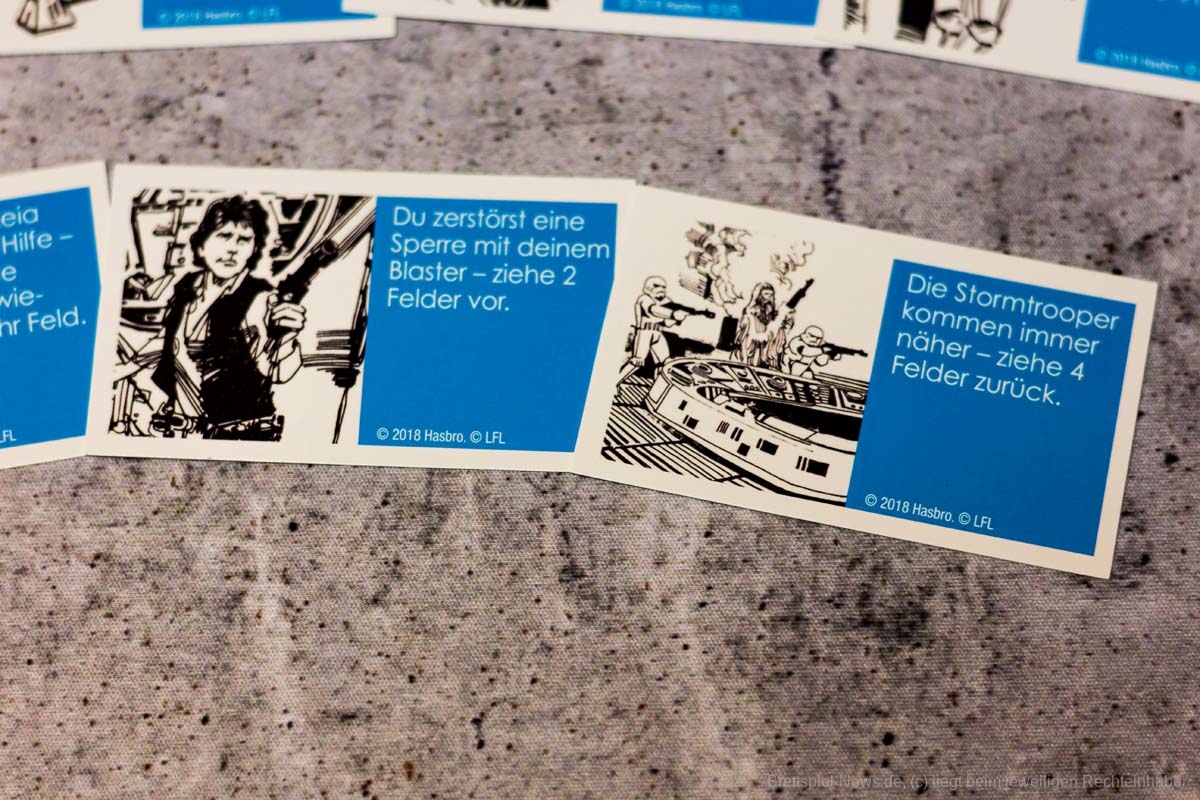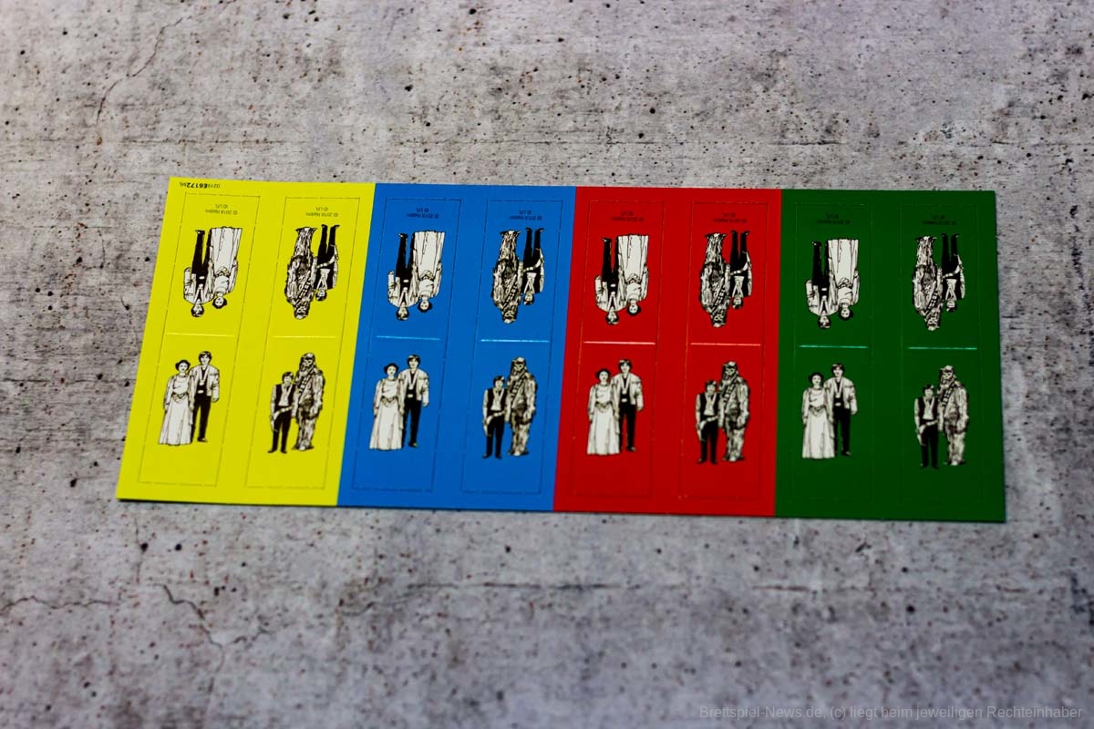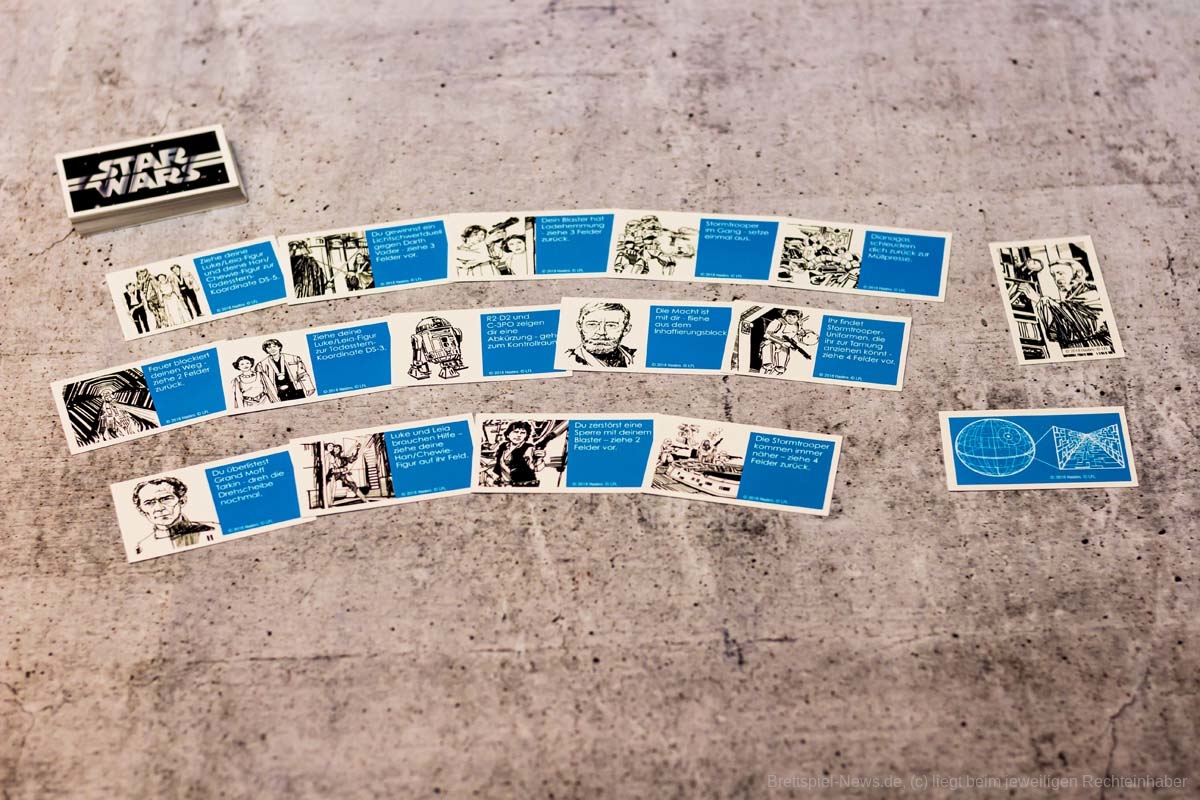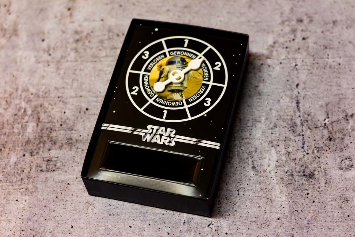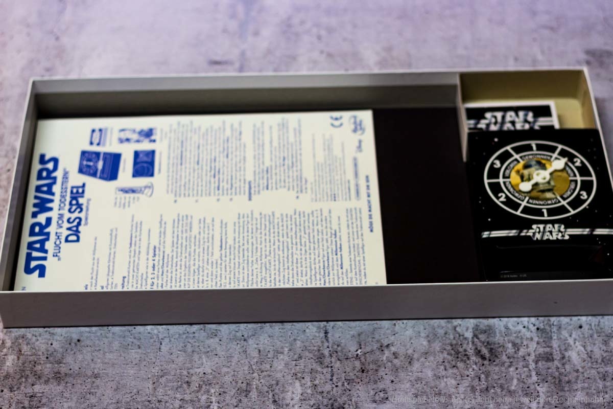 Das Spielmaterial hingegen nimmt kaum Platz ein und ist sowohl bei der Anleitung als auch bei den Aufstellern mutmaßlich der alten, sehr einfachen Qualität nachempfunden. Spielerisch darf hier nicht viel erwartet werden. Als Autor wird DOUG KAUFMAN geführt, für die Grafik war LUCASFILM LTD., die Firma hinter den Filmen, tatsächlich verantwortlich. Ein Tipp: Auf Netflix ist die Folge eins der ersten Staffel von 'SPIELZEUG - Das war unsere Kindheit' die Geschichte von KENNER sehr gut nachgezeichnet.