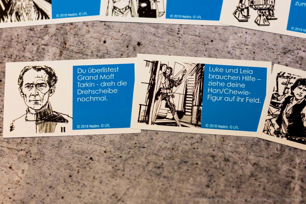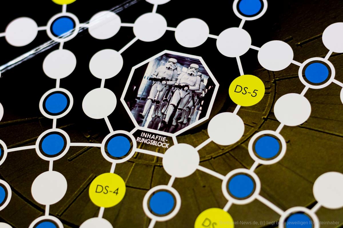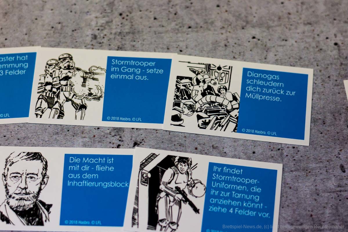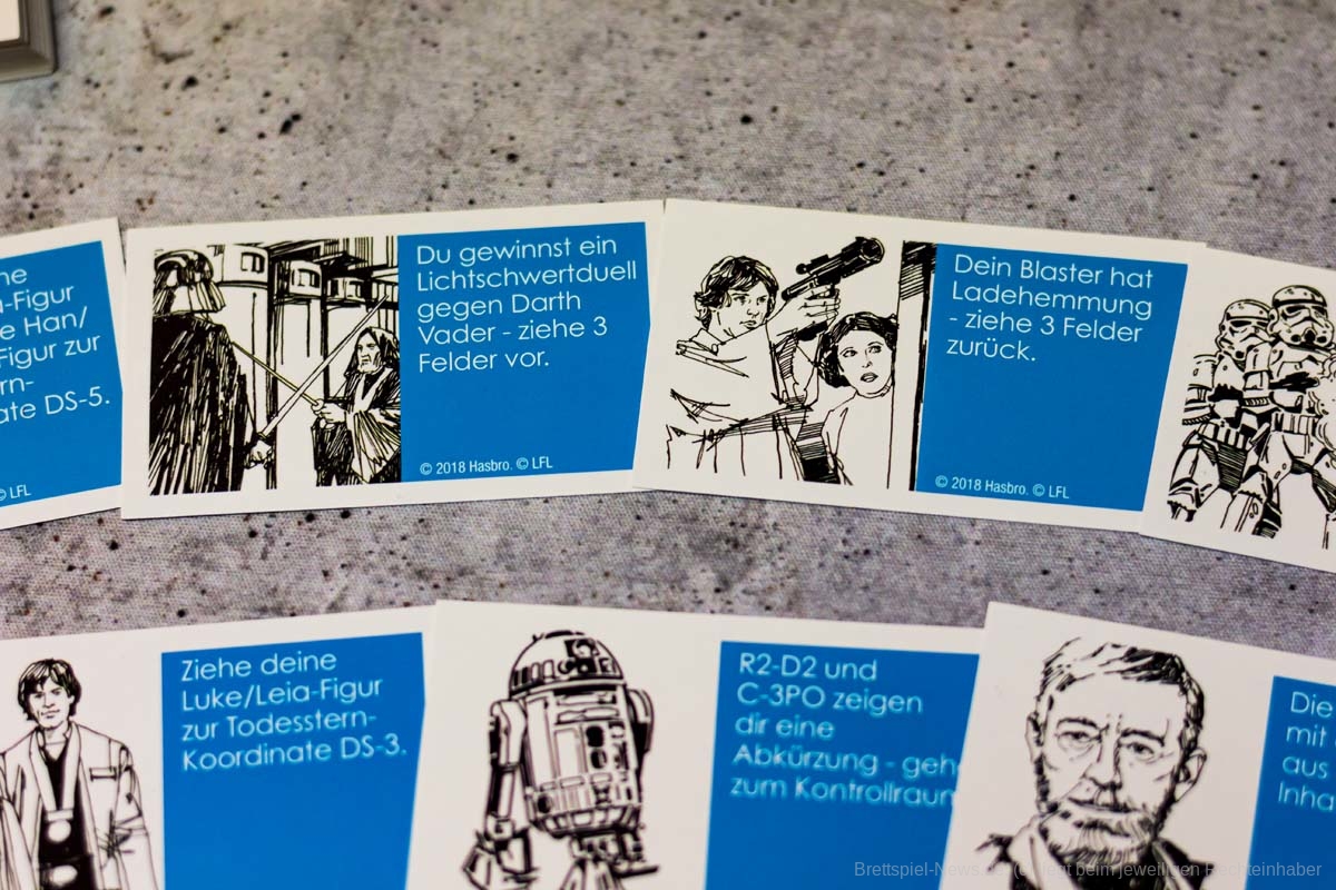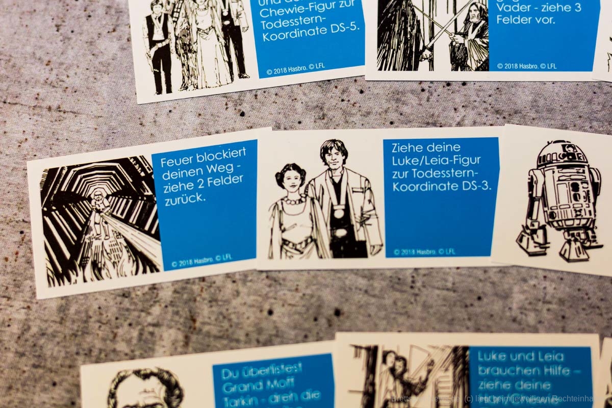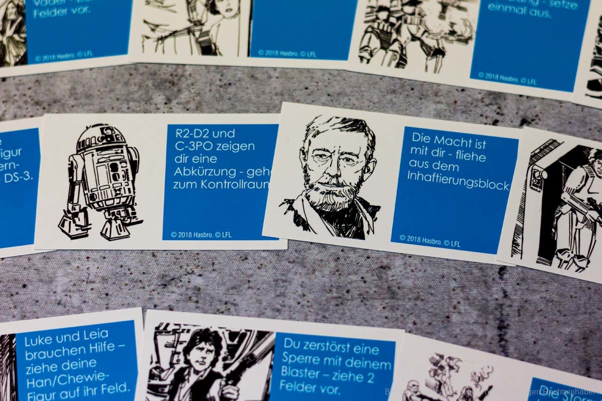Das Spielmaterial hingegen nimmt kaum Platz ein und ist sowohl bei der Anleitung als auch bei den Aufstellern mutmaßlich der alten, sehr einfachen Qualität nachempfunden. Spielerisch darf hier nicht viel erwartet werden. Als Autor wird DOUG KAUFMAN geführt, für die Grafik war LUCASFILM LTD., die Firma hinter den Filmen, tatsächlich verantwortlich. Ein Tipp: Auf Netflix ist die Folge eins der ersten Staffel von 'SPIELZEUG - Das war unsere Kindheit' die Geschichte von KENNER sehr gut nachgezeichnet.