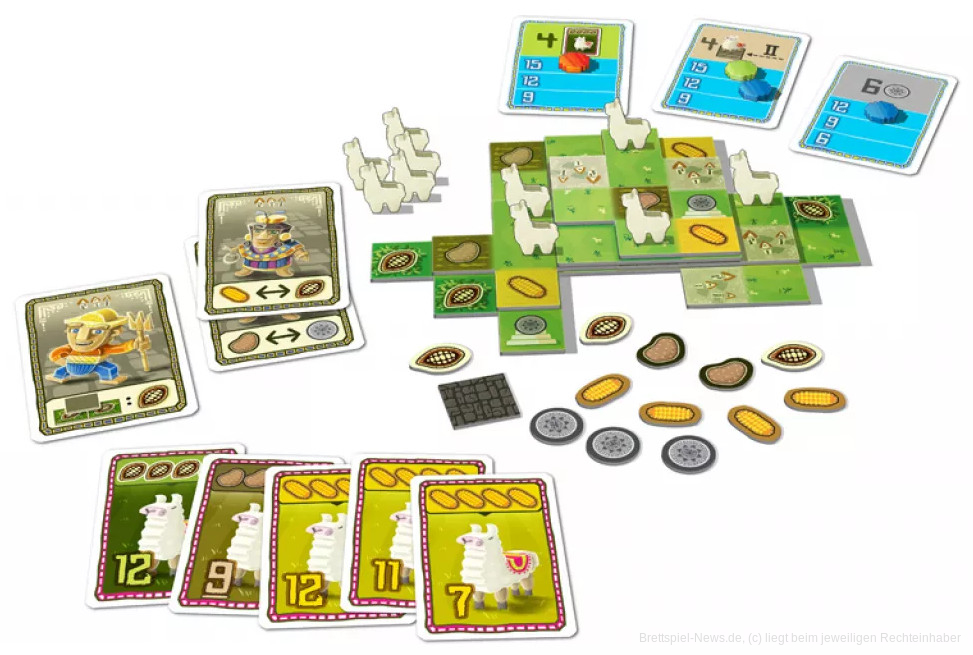 All die Hügel und Berge machen es den Spieler:innen als Farmerinnen und Farmer gar nicht so leicht: Kartoffeln, Mais und Kakao wollen ertragreich an den Hängen der Berge angebaut werden. Hierbei sollen die fleißigen Llamas helfen. Also puzzeln die Spieler:innen ihre Felder in ungeahnte Höhen um reiche Ernte einzufahren und mit dieser die begehrten Llamakarten zu ergattern. Wer sich dabei besonders geschickt anstellt, hat nach rund 45 Minuten Spielzeit ein imposantes Anbaugebiet mit vielen süßen Llamas und noch mehr Siegpunkten vor sich.