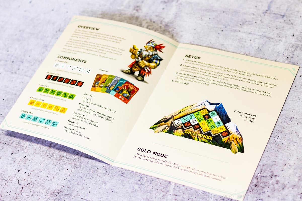 DICE MINER wurde von ATLAS GAMES ausgeliefert. Das englischsprachige Spiel richtet sich an 1-4 Spielende und bietet eine Spielzeit von 20-30 Minuten. DICE MINER ist schnell aufgebaut und enthält eine kurze Anleitung. Das Spielmaterial macht einen guten Eindruck. Sobald das Spiel auch im deutschen Handel verfügbar ist, werden wir berichten.
