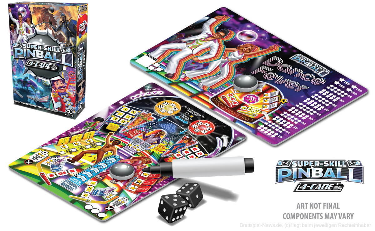 Das Kennerspiel FLIPPERMANIA erschein bei FROSTED GAMES voraussichtlich im Herbst/Winter 2021 und lässt sich derzeit bereits beim Verlag vorbestellen. Im englischen Sprachraum trägt das Spiel den Titel SUPER-SKILL PINBALL: 4-CAD und ist 2020 bei WIZKIDS erschienen. Das Roll & Write Spiel richtet sich an 1-4 Spielende und bietet eine Spielzeit von etwa 30 Minuten. Der UVP liegt bei 24,95 €.